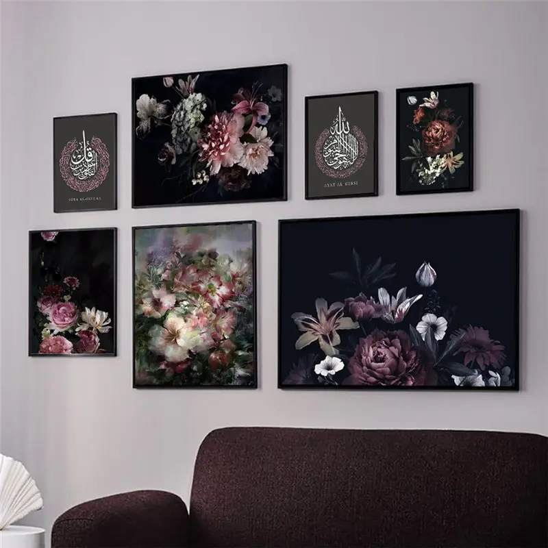 Исламская каллиграфия Аллах фиолетовый цветочный мусульманский настенный художественный холст живопись постеры для гостиной эстетическое украшение для дома