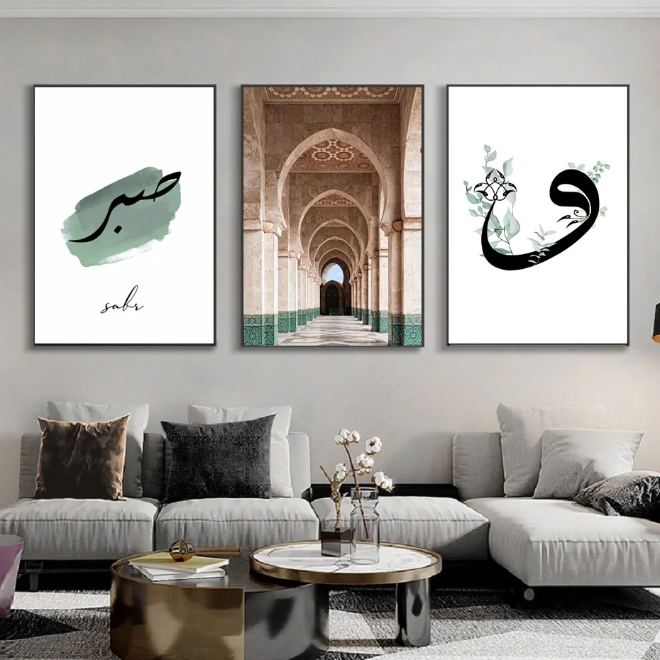 Мусульманская, Арабская, мусульманская каллиграфия, Художественная печать, черно-белый плакат, Зеленый лист, архитектура, мусульманская Настенная картина, Картина на холсте