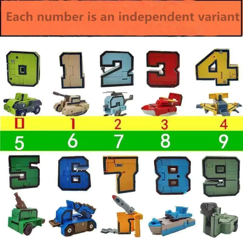 Этот продукт является цифровым преобразователем. Количество моделей 0-9 преобразуется в различные боевые Режимы (размер каждого стиля номера составляет около 5 см)Если вам нужно купить готового робота 18 см, вам нужно собрать цифры 0 ~ 9 в робот 18 см (Бесплатные инструкции по сборке)Без коробки