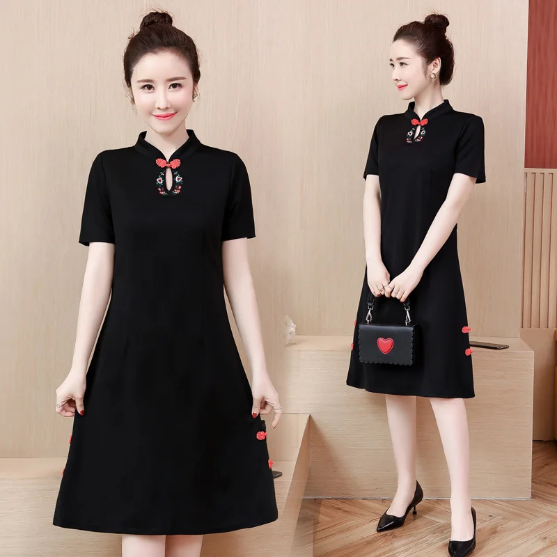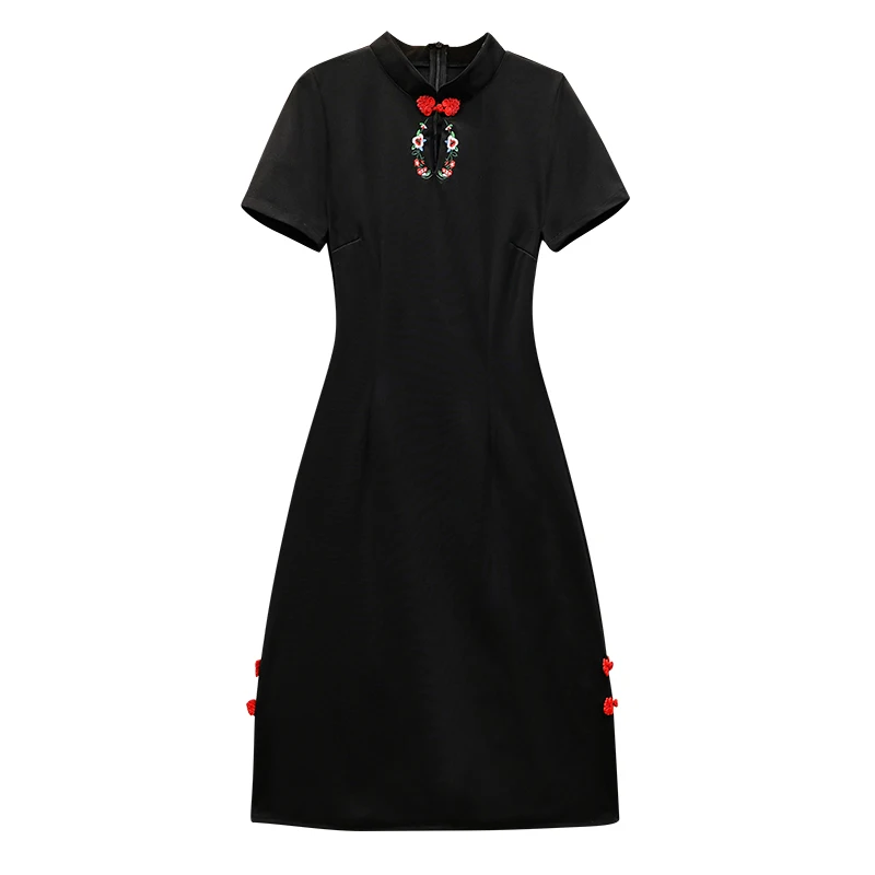 Женское винтажное платье-миди с вышивкой, в китайском стиле