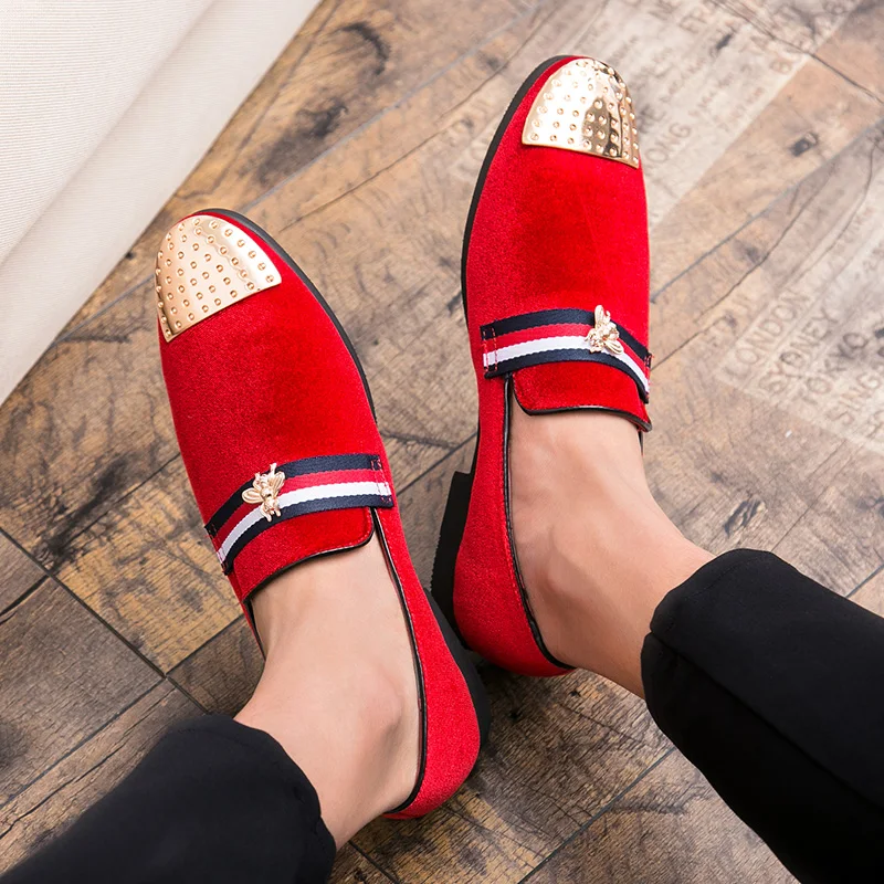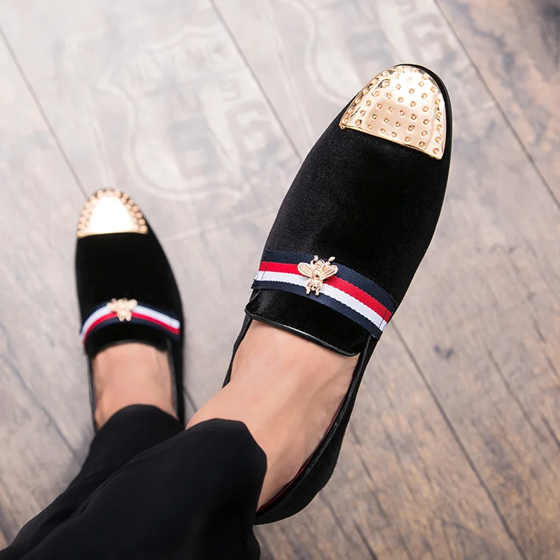 Новинка, модная черная Мужская бархатная обувь с металлическим носк...