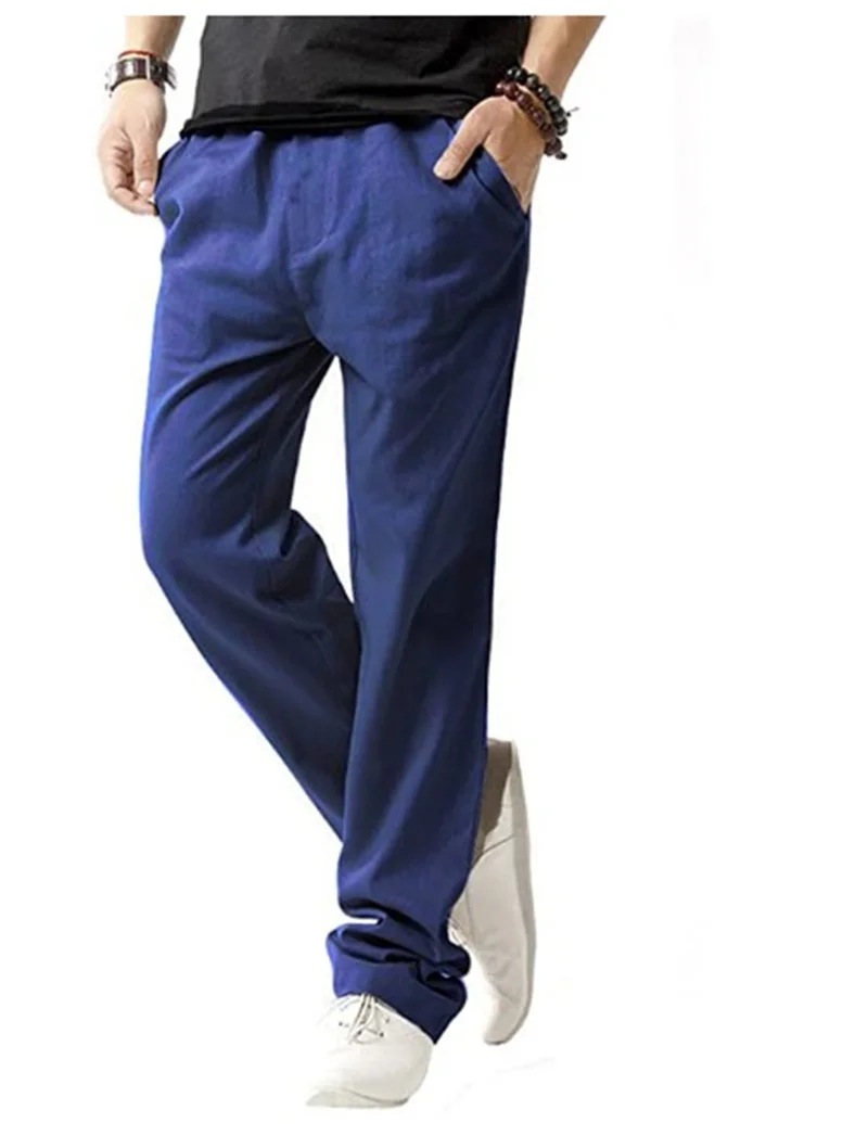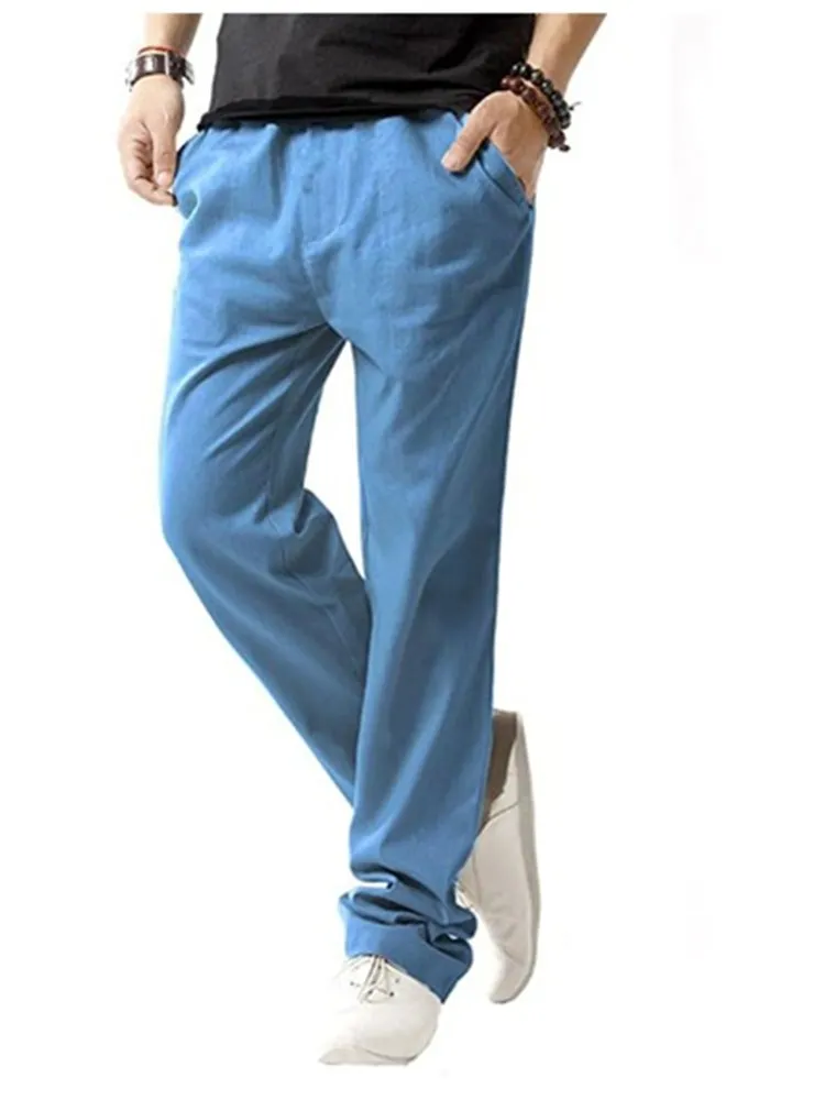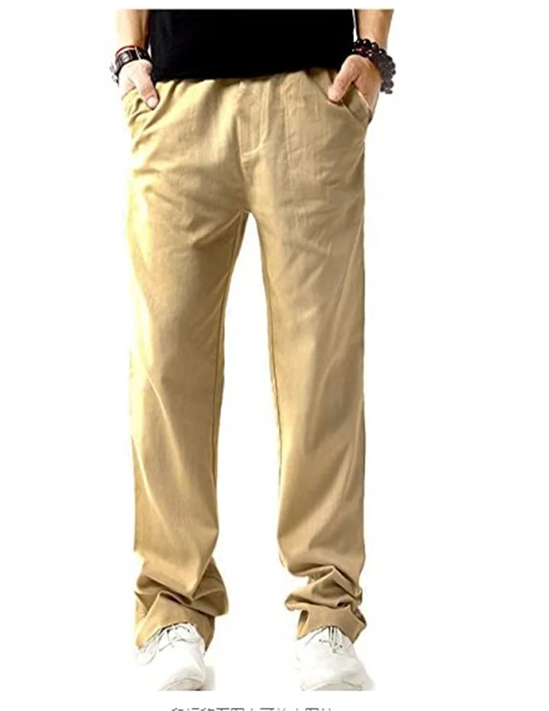 Брюки мужские из хлопка и льна, дышащие однотонные льняные штаны в стиле Харадзюку, уличная одежда для фитнеса, лето 2021
