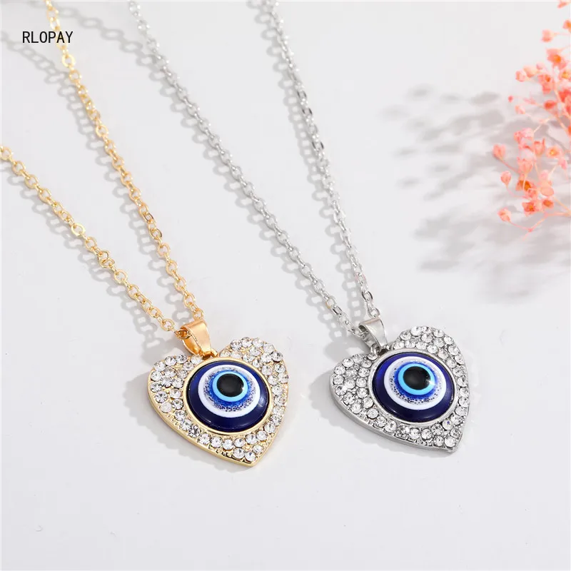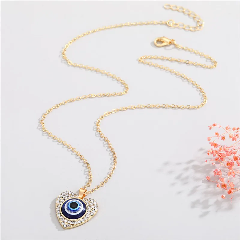 Нержавеющаясталь турецких "око дьявола" с углом обзора Цепочки и ожерелья любящее сердце Форма кулон с голубыми глазами O Цепь Кулон Цепочки и ожерелья s в золоте