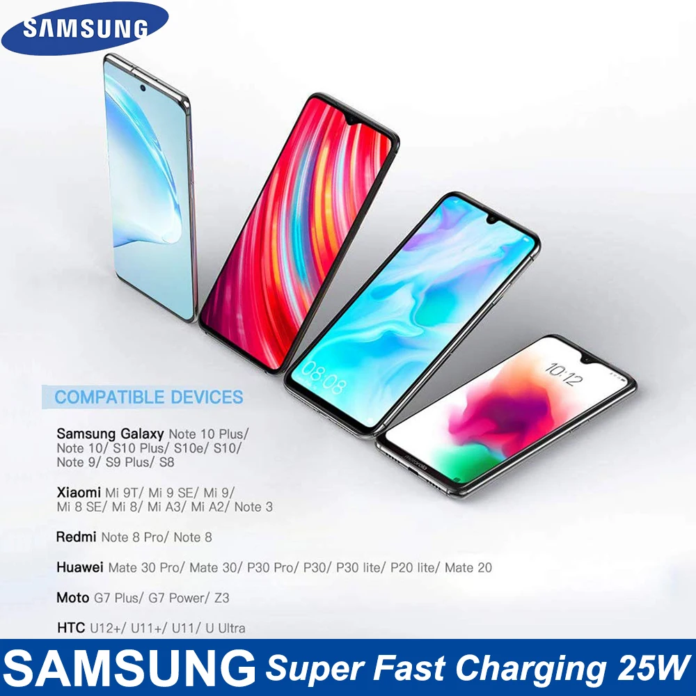 Note 10 оригинальный Samsung Galaxy 25 Вт супер быстрый зарядный адаптер PD зарядное устройство 100 см USB-C кабель для S20 Ultra S20 Plus S20 Galaxy S10 S9 A50 A70Особенности:1) Этот продукт является 100% оригинальным2) Это оригинальная супер быстрая зарядка Note10 PRO 5G, Note 10, которая используется всеми интерфейсами type-C.Выход 9V2.77A делает зарядку быстрее.3)USB Type-C Om Type-C Kabel4) Мы сделаем все возможное, чтобы отправить товар в тот же день и отправить его на следующий день в выходные дни. Пожалуйста, не стесняйтесь размещать заказ.Пожалуйста, подтвердите, что ваш телефон является портом Type C!