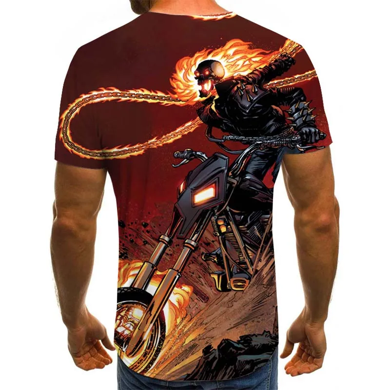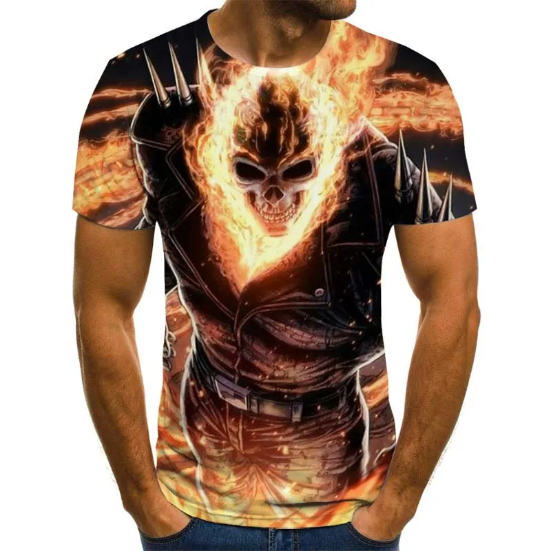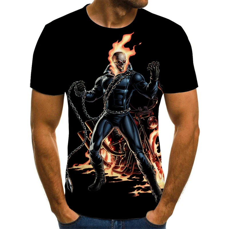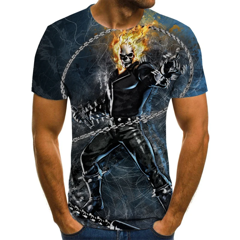 Футболка мужская с 3D-принтом черепа, модная тенниска с коротким рукавом, крутая майка Призрачного гонщика, топ с принтом черепа, лето
