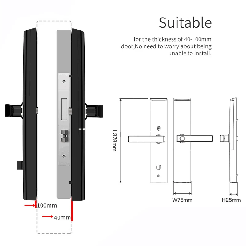1. Специальный корпус замка, прост в установке, который больше подходит для заграничной системы блокировки дверей клиентов.2. Поддержка разблокировки приложений, пульт дистанционного управления через шлюз, диапазон приема 10-15 м.3. Поддержка отпечатков пальцев, пароля, RFID карты, механический ключ разблокировки, сделать ваш дом умнее.4. Функция оповещения о низком заряде батареи: Когда батарея истекает, она будет автоматически напоминать5. Избыточный режим ожидания, время работы в режиме ожидания до 365 дней (Источник питания: 4 батарейки типа АА (не входят в комплект).6. Оснащен usb-портом для экстренной зарядки.7. Подходит для двери толщиной 40-100 мм.8. Удовлетворяет разнообразные потребности, универсальные для всех направлений (левый/пуш-ап, правый/пуш-ап).