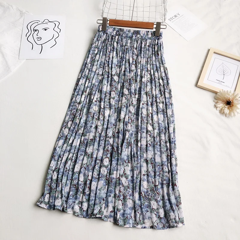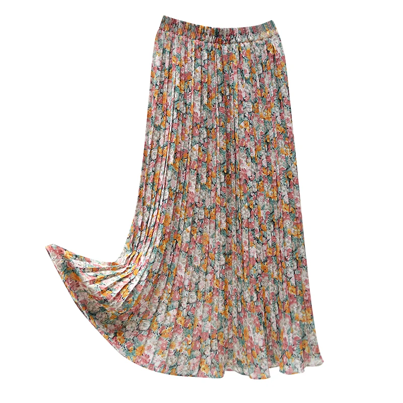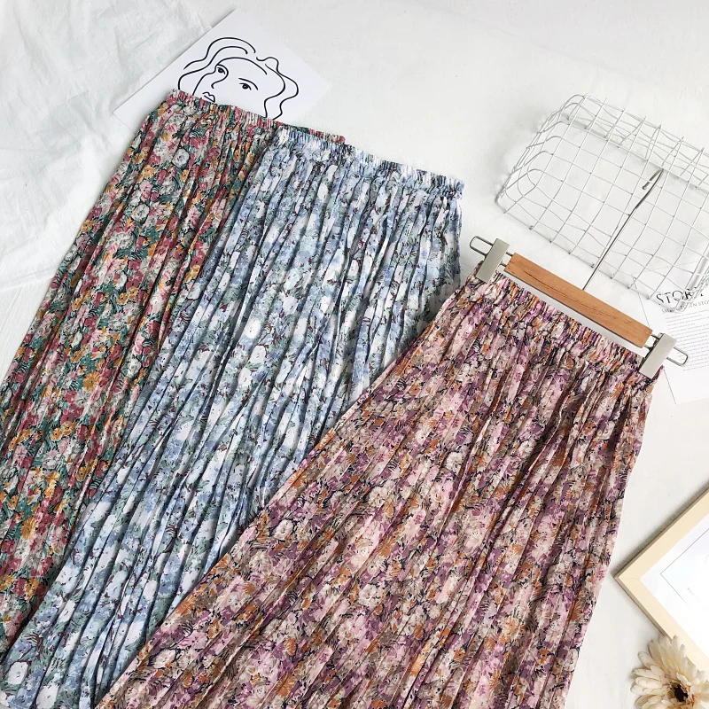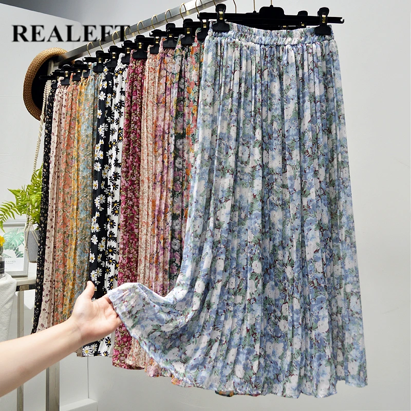 Женская шифоновая плиссированная юбка REALEFT, винтажная Повседневная Длинная юбка с цветочным принтом и высокой талией, лето 2021