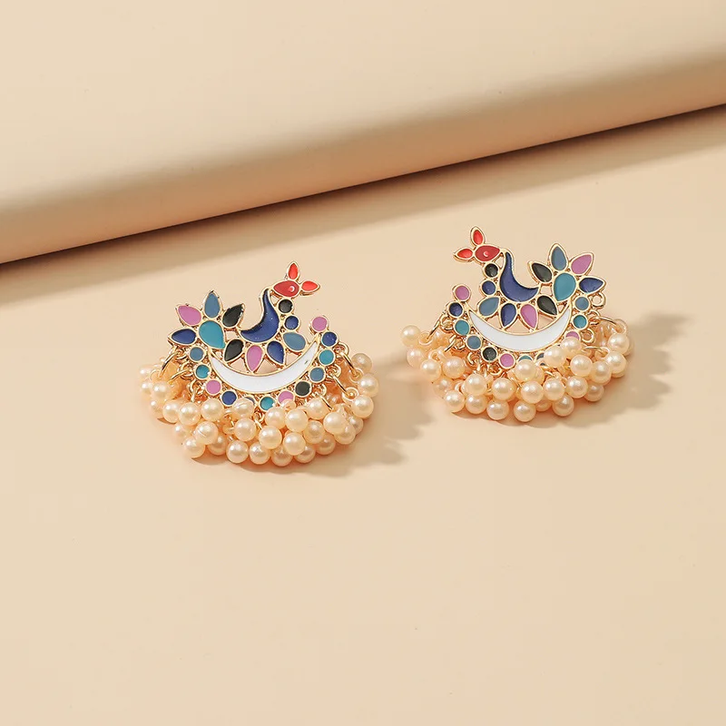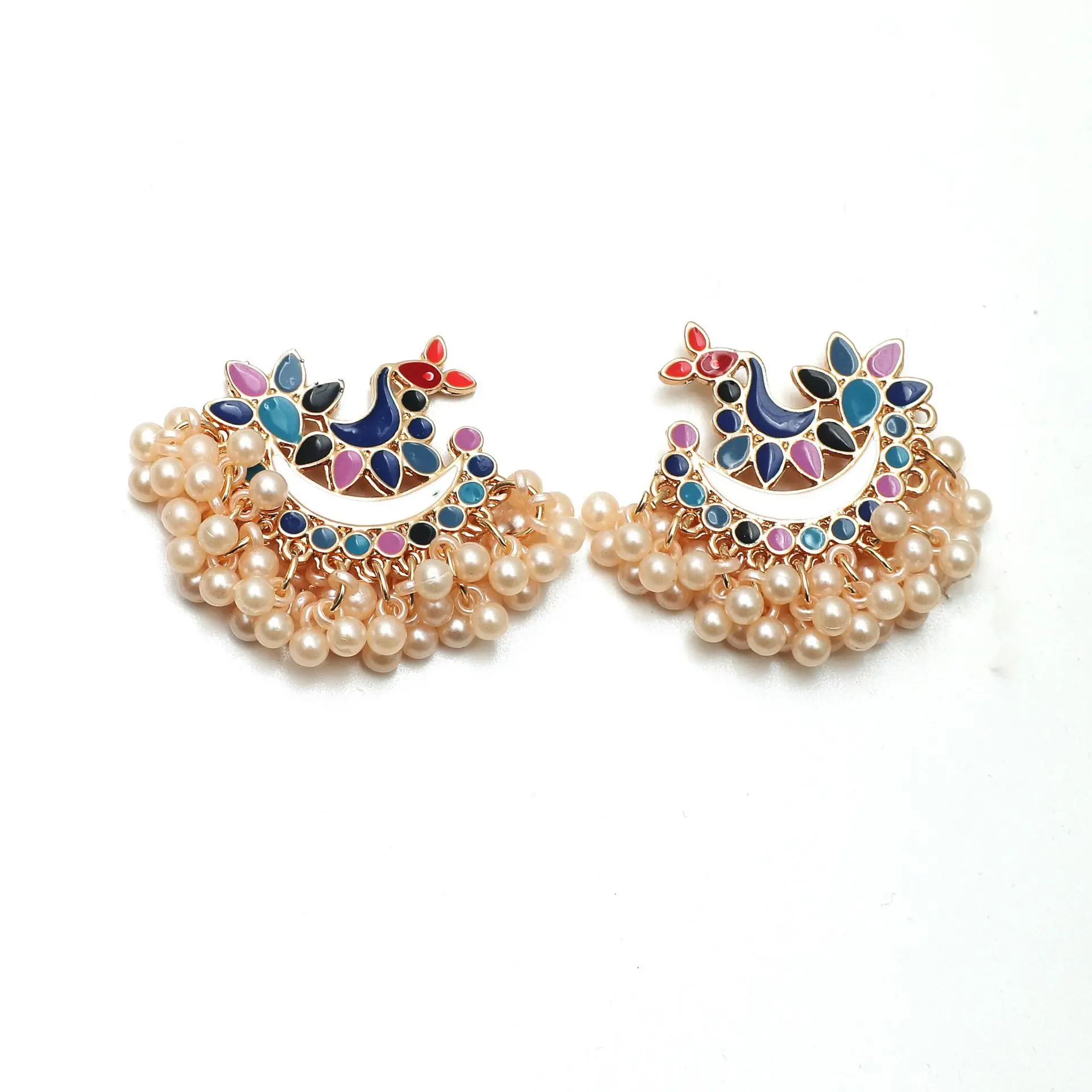 Болливуд этнические Свадебные Серьги невесты кундан для женщин эмалевые Цветочные жемчужины Jhumka Jhumki индийские серьги-капли модные ювелирные изделия