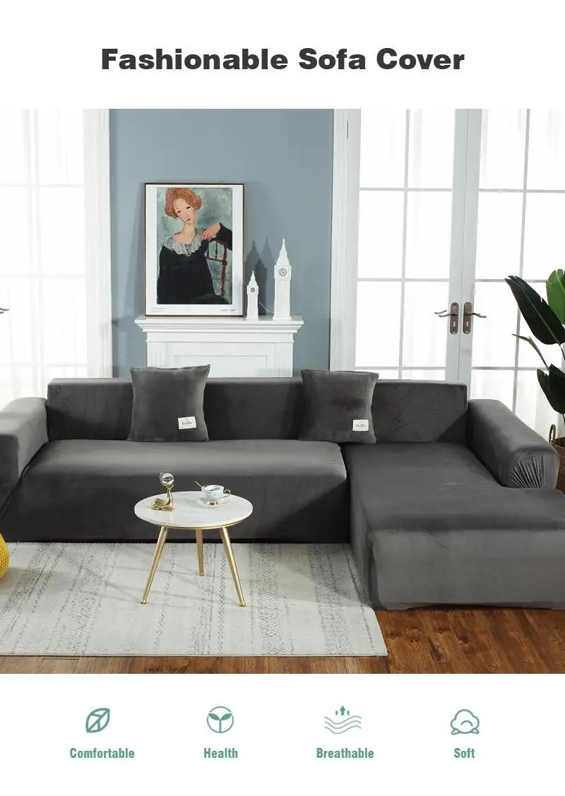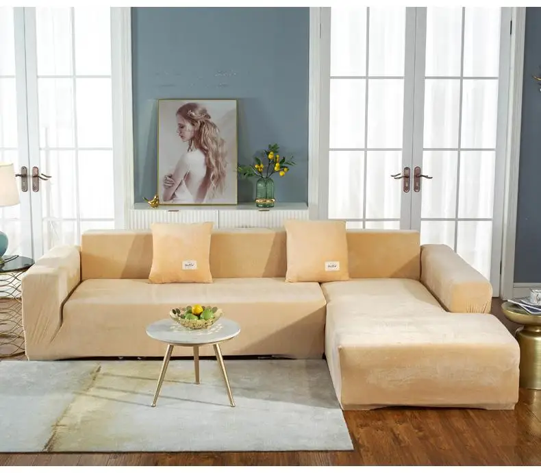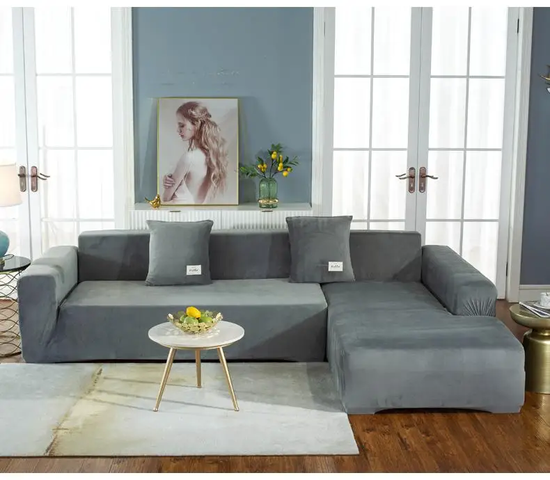Плюшевые эластичные L-образные чехлы для диванов, наборы бархатных ...