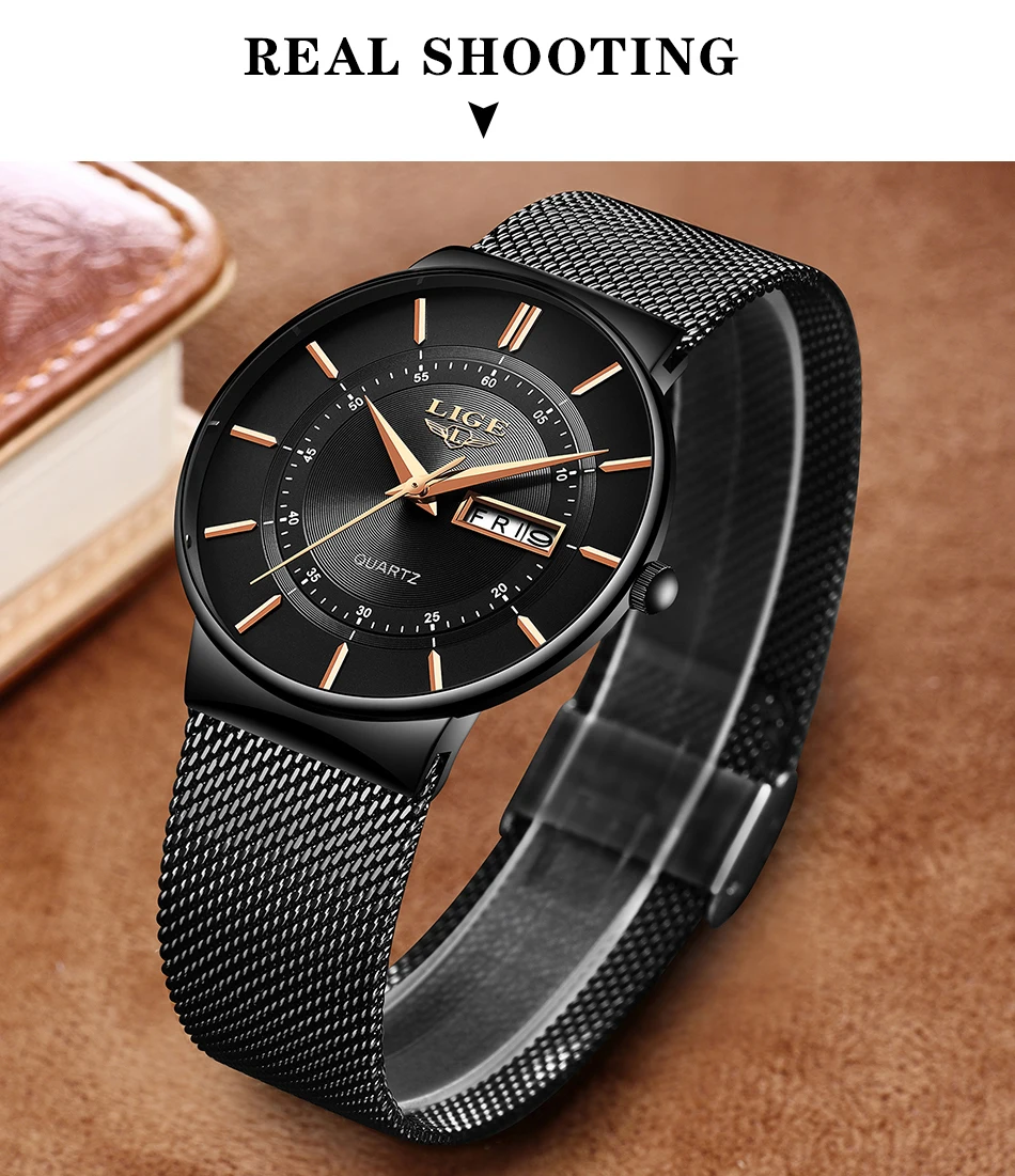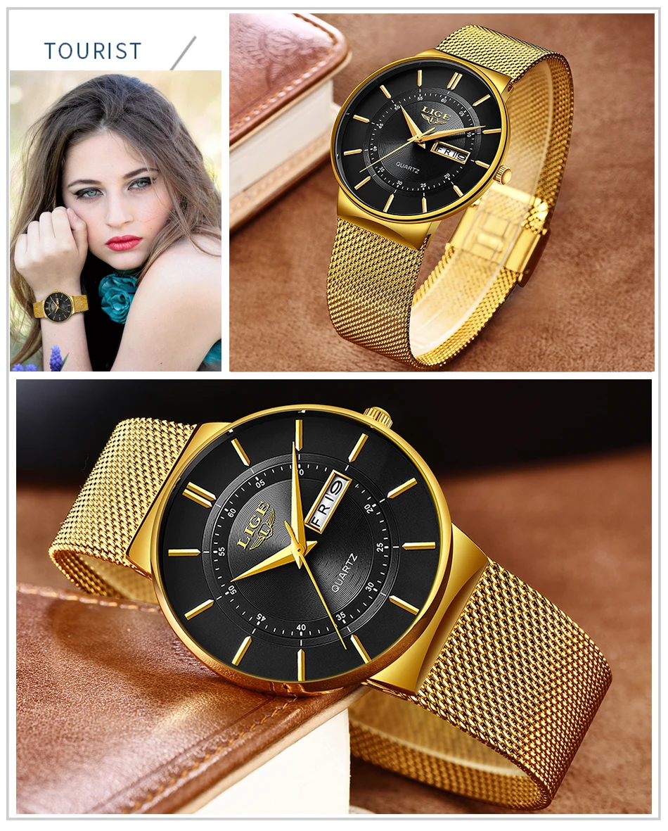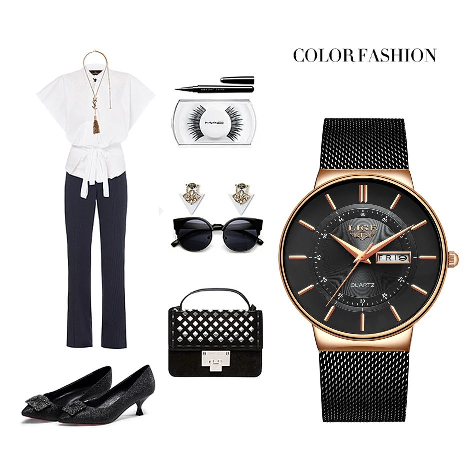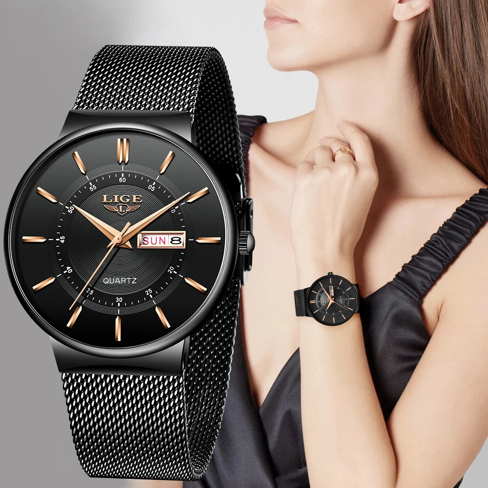 Часы наручные LIGE женские кварцевые, брендовые Роскошные простые полностью стальные водонепроницаемые черные, подарок, 2021