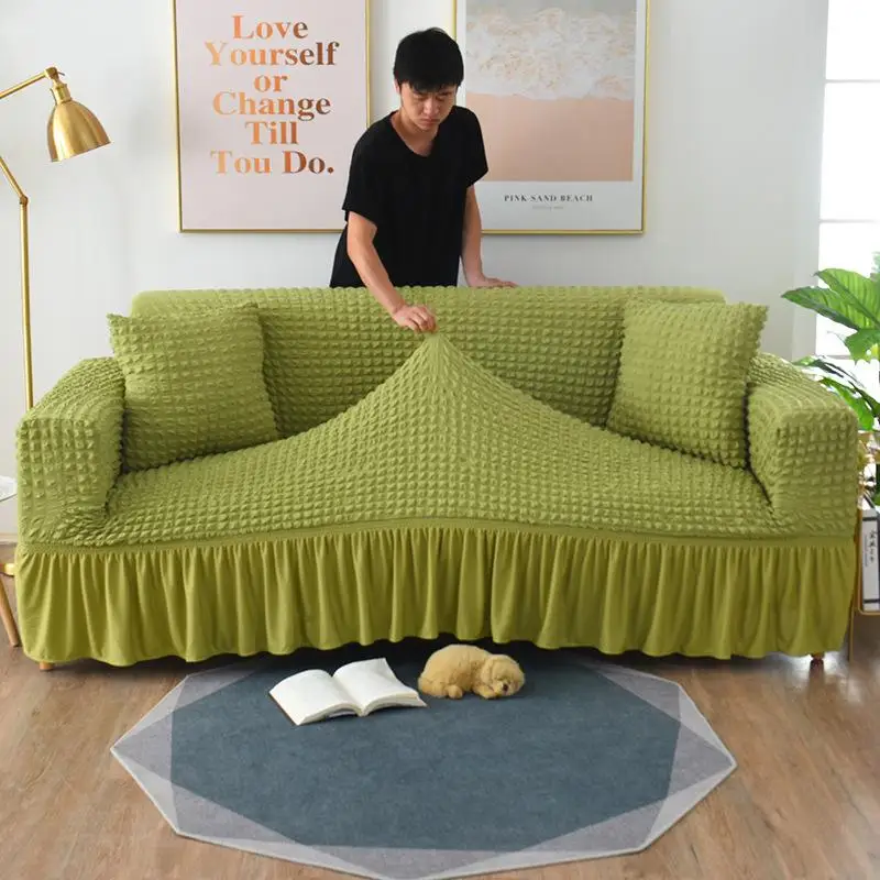 Жаккардовый чехол для дивана с юбкой, эластичный универсальный чехол на диван, мебельное покрытие для гостиной, на однодватричетыре места