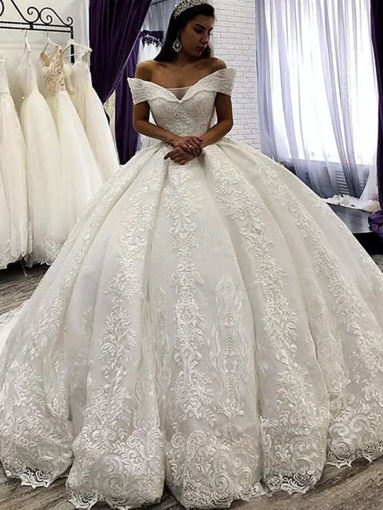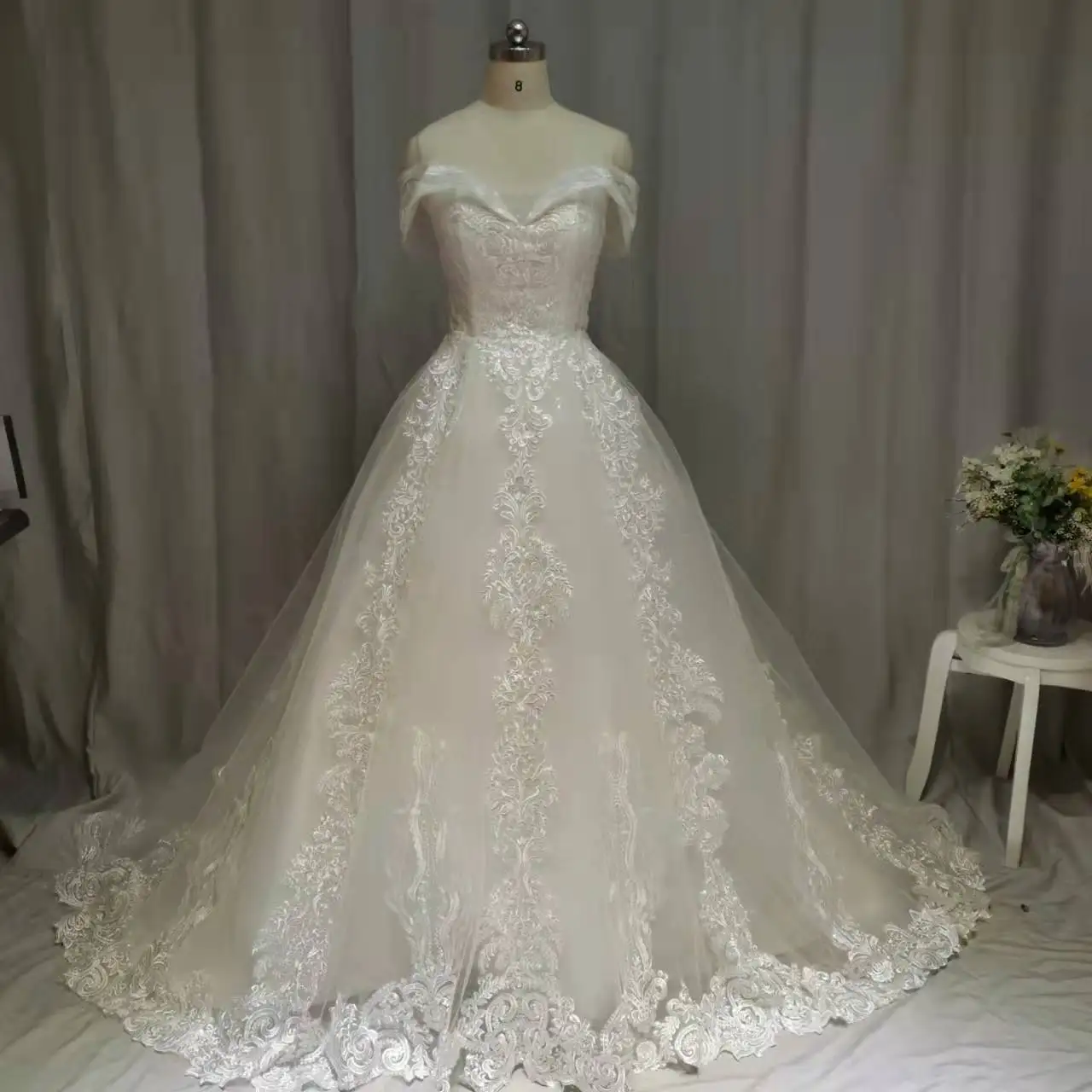 Свадебное платье с открытыми плечами, атласное платье принцессы в б...