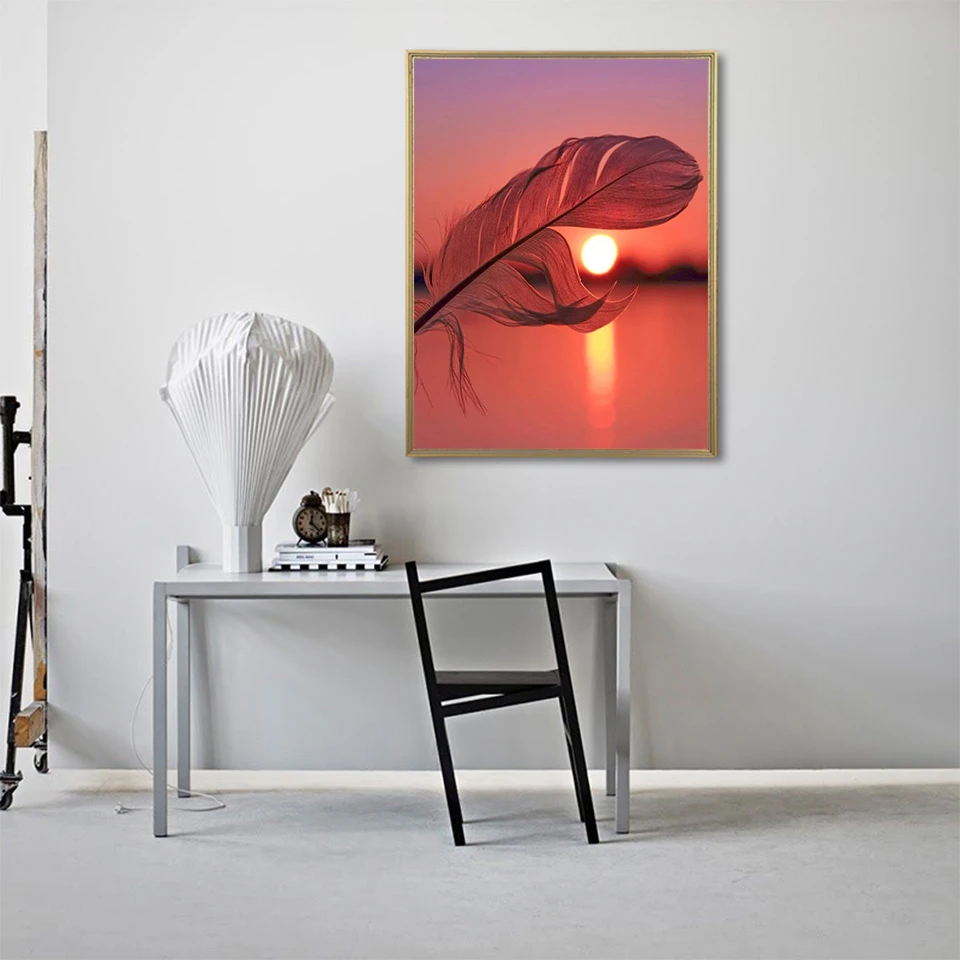 5D алмазная живопись сделай сам, вышивка крестиком, перо, листья, мозаика, полноразмерная, круглая, стразы, домашний декор, рукоделие