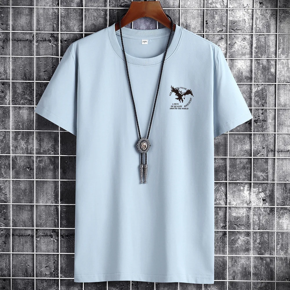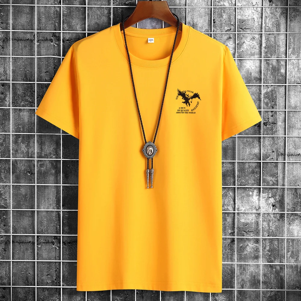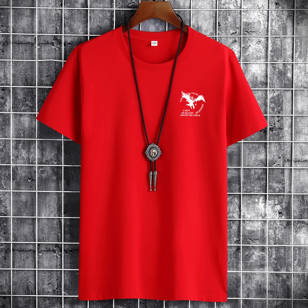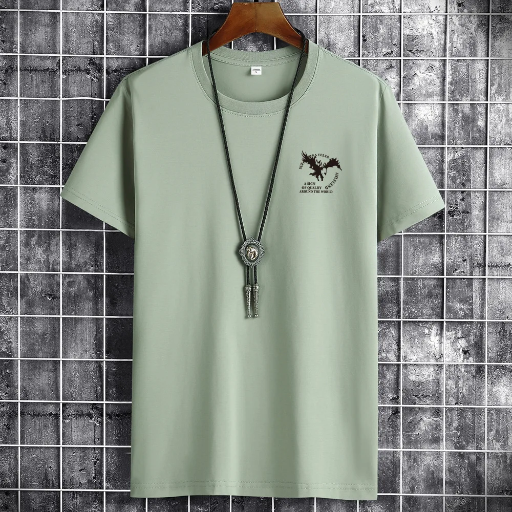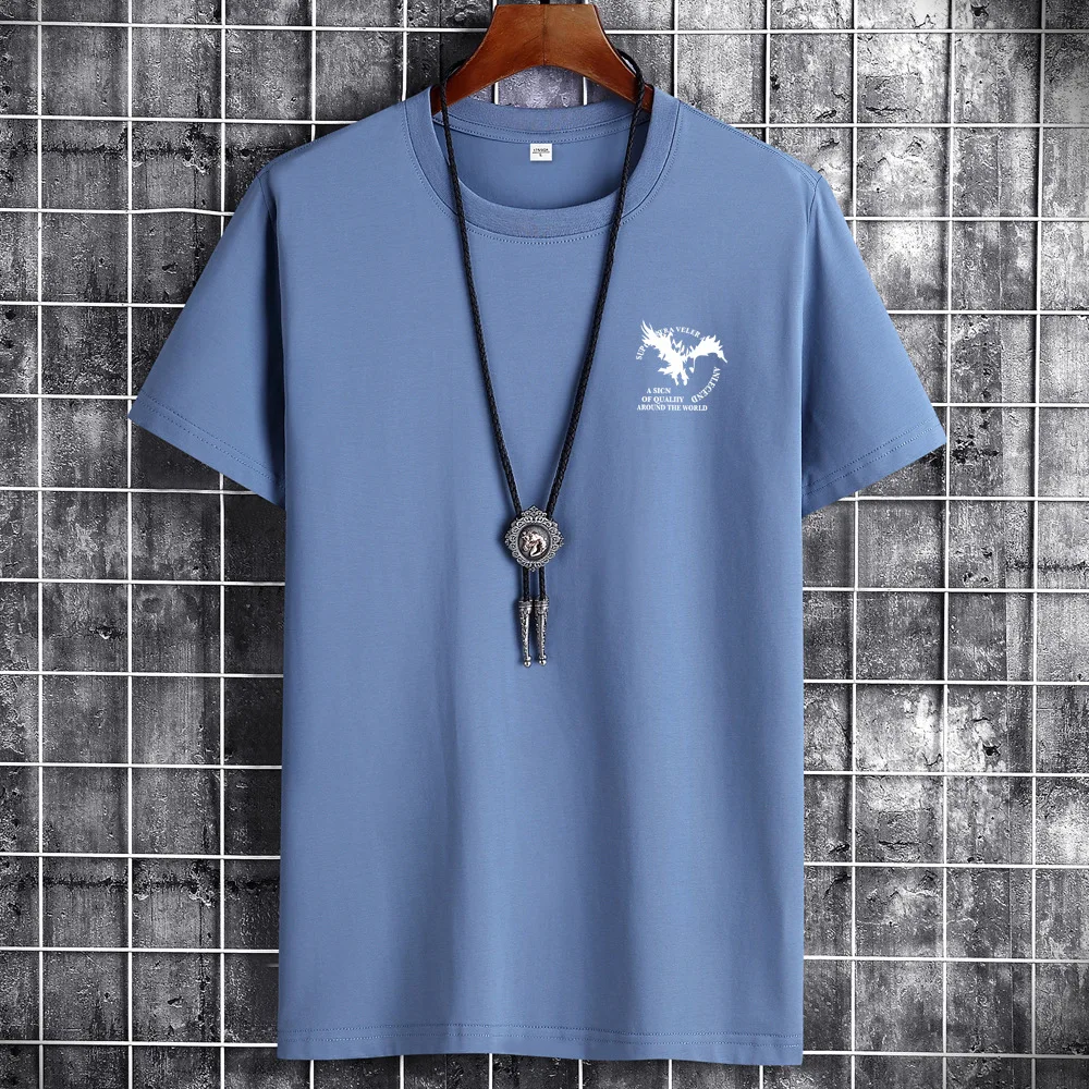 Футболка JFUNCY мужская с круглым вырезом, свободная хлопковая дышащая рубашка с коротким рукавом, повседневная с принтом орла и букв, большие размеры, на лето