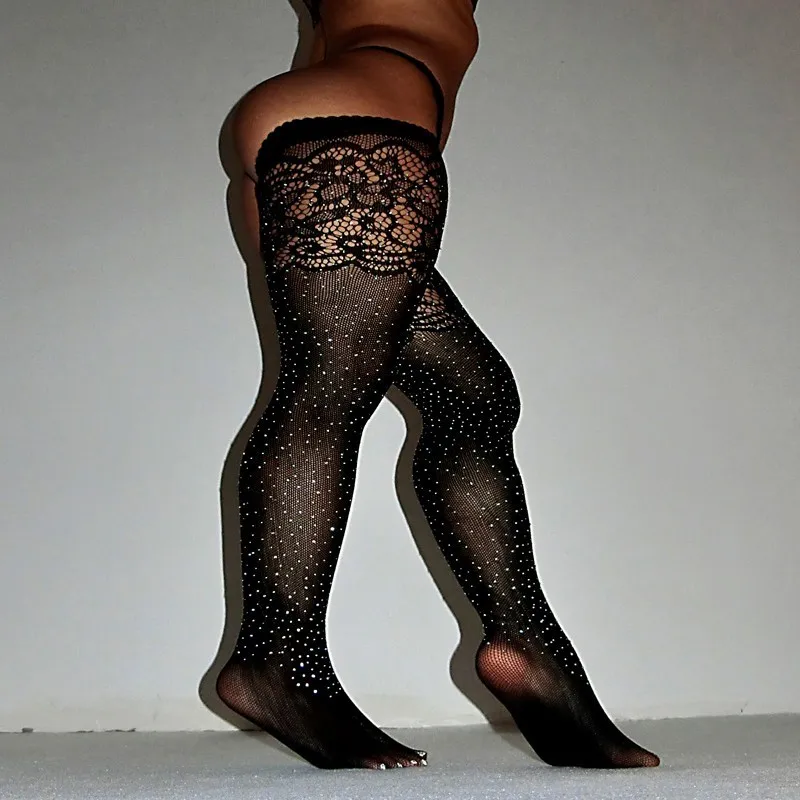 Женские длинные носки, сексуальные женские чулки стразы, блестящие ажурные колготки, гольфы, чулки до бедра, чулки SW119