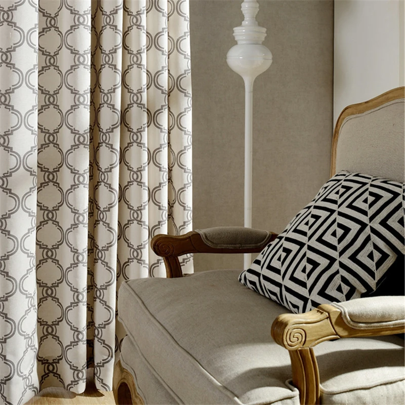 Шторы с рисунком для гостиной, спальни, льняные занавески с геометрической сеткой, для столовой, плитка с марокканским узором