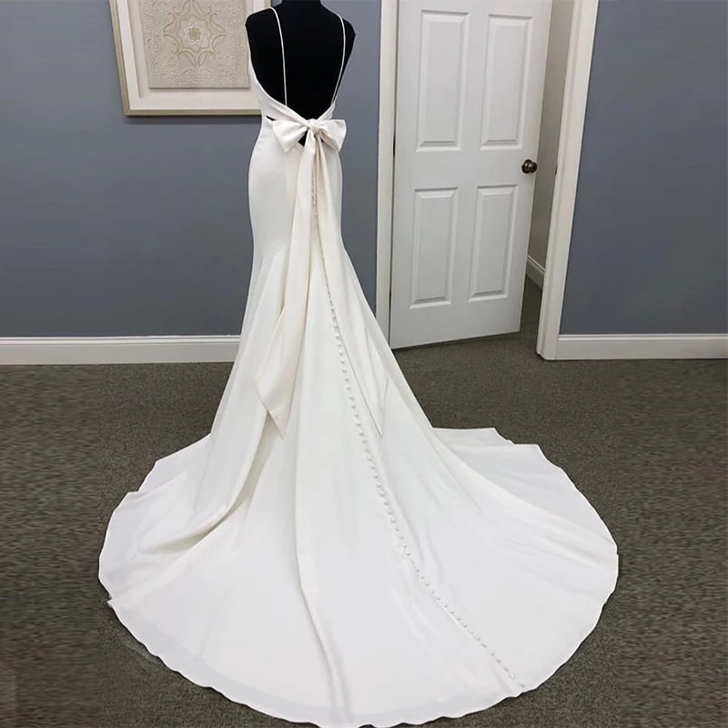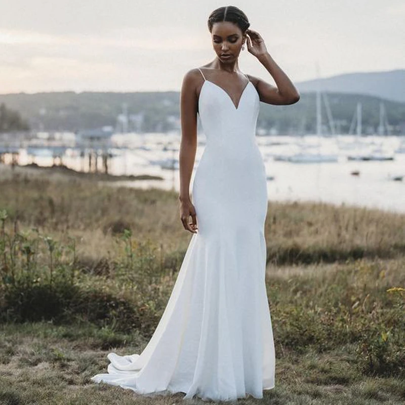 Женское пляжное свадебное платье с юбкой-годе, платье невесты из крепа на тонких бретельках с открытой спиной в стиле бохо, платье невесты, 2022