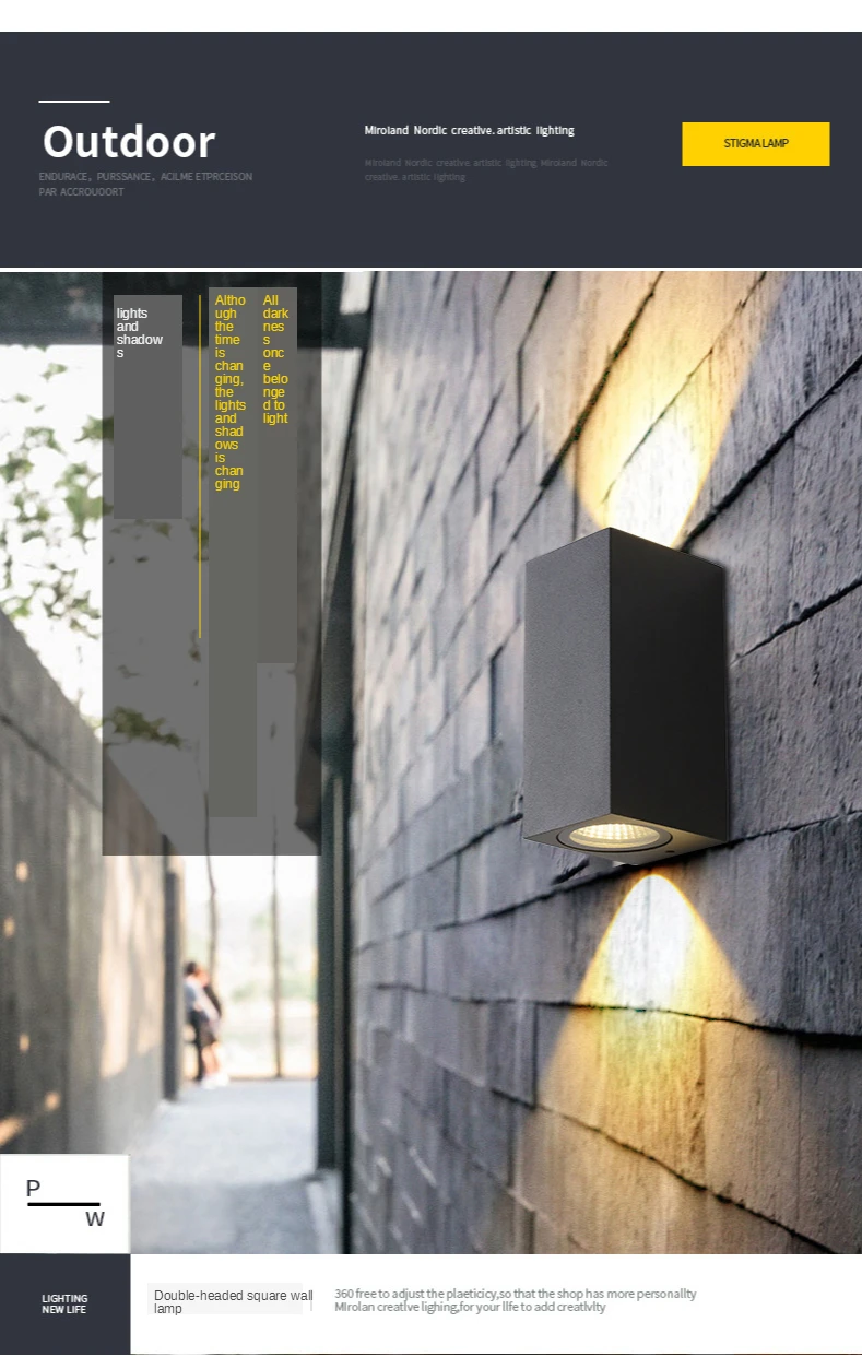 Светодиодный алюминиевый настенный светильник, IP65, водонепроницаемый комнатный и уличный светильник для сада, крыльца, уличное украшение