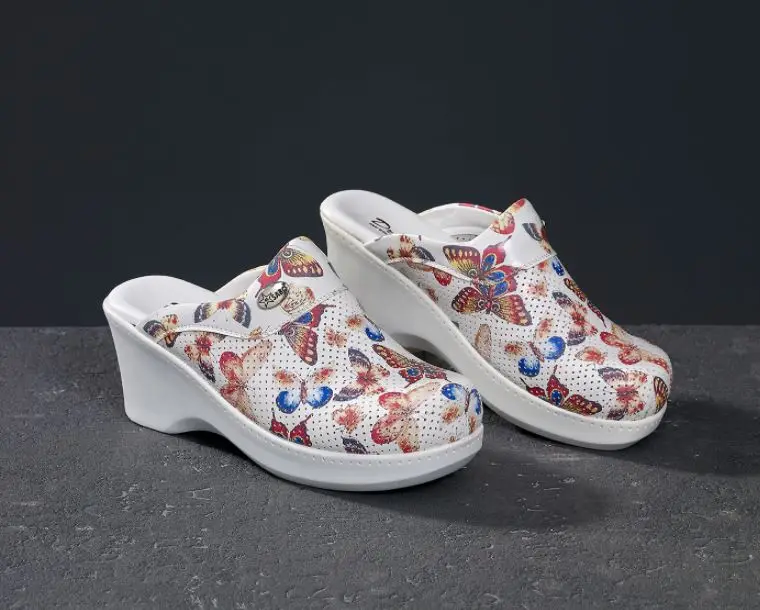 -В модели женских босоножек и тапочек Сабо используются амортизирующая система и опоры на пятке.