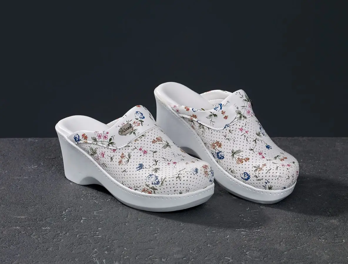 Сабо Женская обувь тапочки сандалии используются в различных отраслях, таких как, больница, отели, kicthen, Парикмахерская, ресторан. Сабо Женская обувь сандалии тапочки очень удобные, горячие, светильник, так что используется медсестры, доктора и повара он назван как женщины медсестра Доктор повара обувь сандалии тапочки, женская обувь производится много различных цветов, моделей и конструкций.