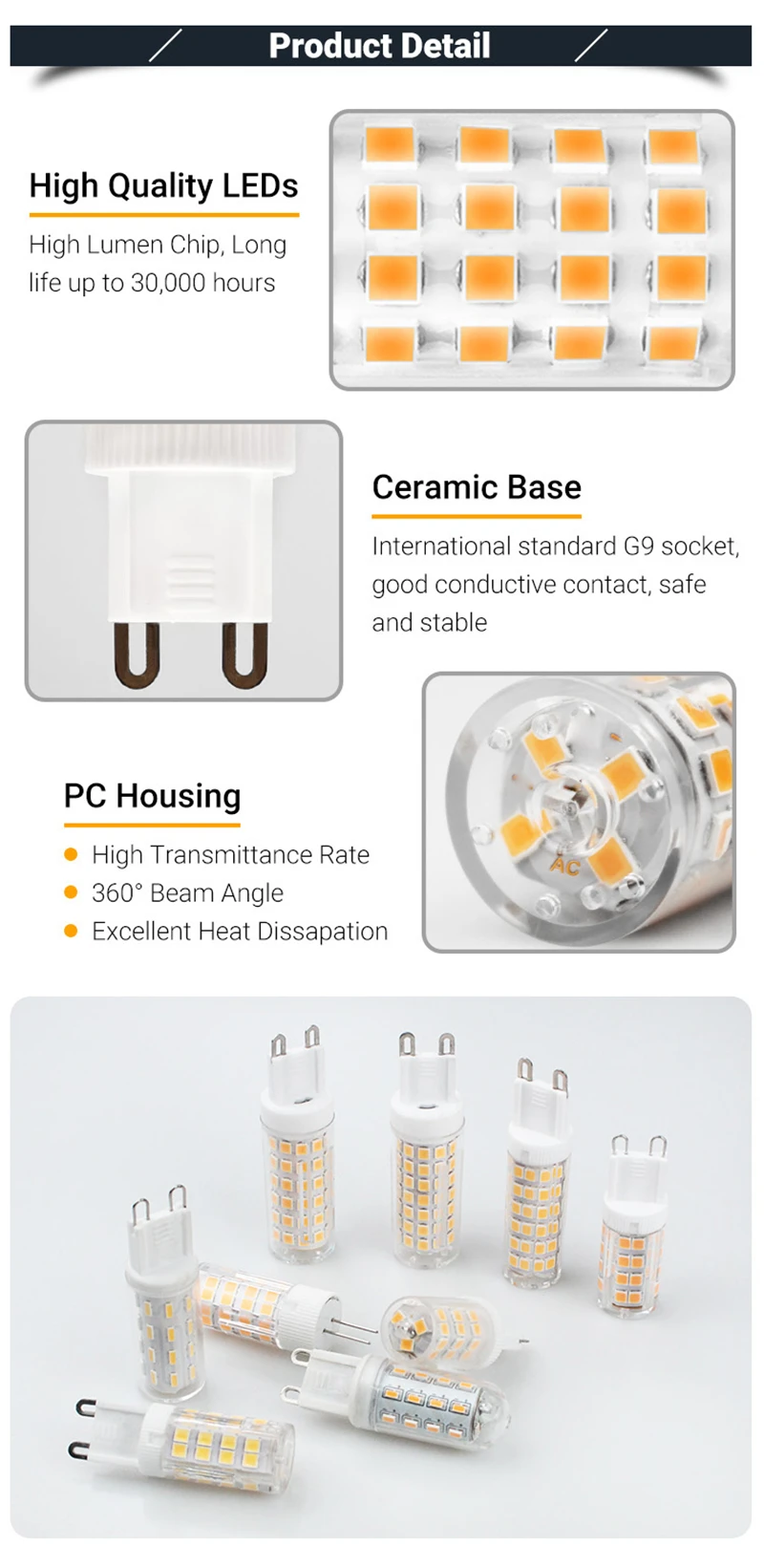Наименование товара: светодиодный светильник G9 Угол луча: 360 градусов Срок службы:> 50000 часов Цветовая температура: теплый белый 2800-3200K/холодный белый 6000-6500K