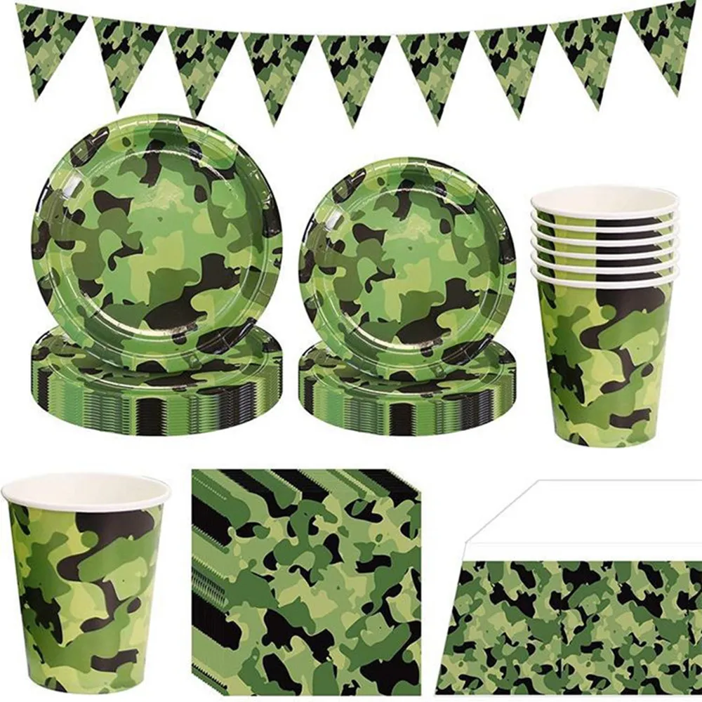 Камуфляжная одноразовая столовая посуда, армейская зеленая скатерть...