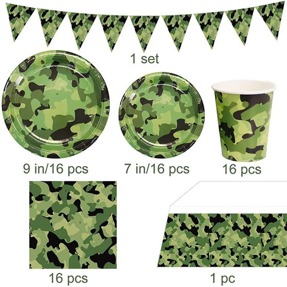 2021 Военная камуфляжная полевая игровая тема, бумажные стаканчики, тарелки, бумажные полотенца, одноразовый декоративный набор для дня рождения