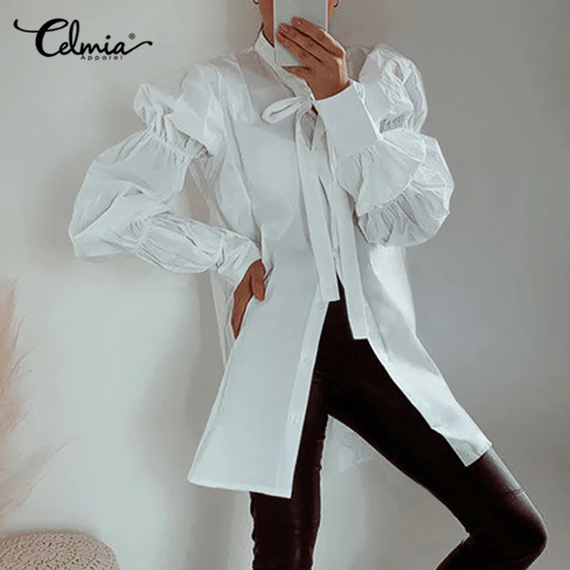 Модная женская рубашка Celmia 2022 с пышными рукавами, длинные руба...