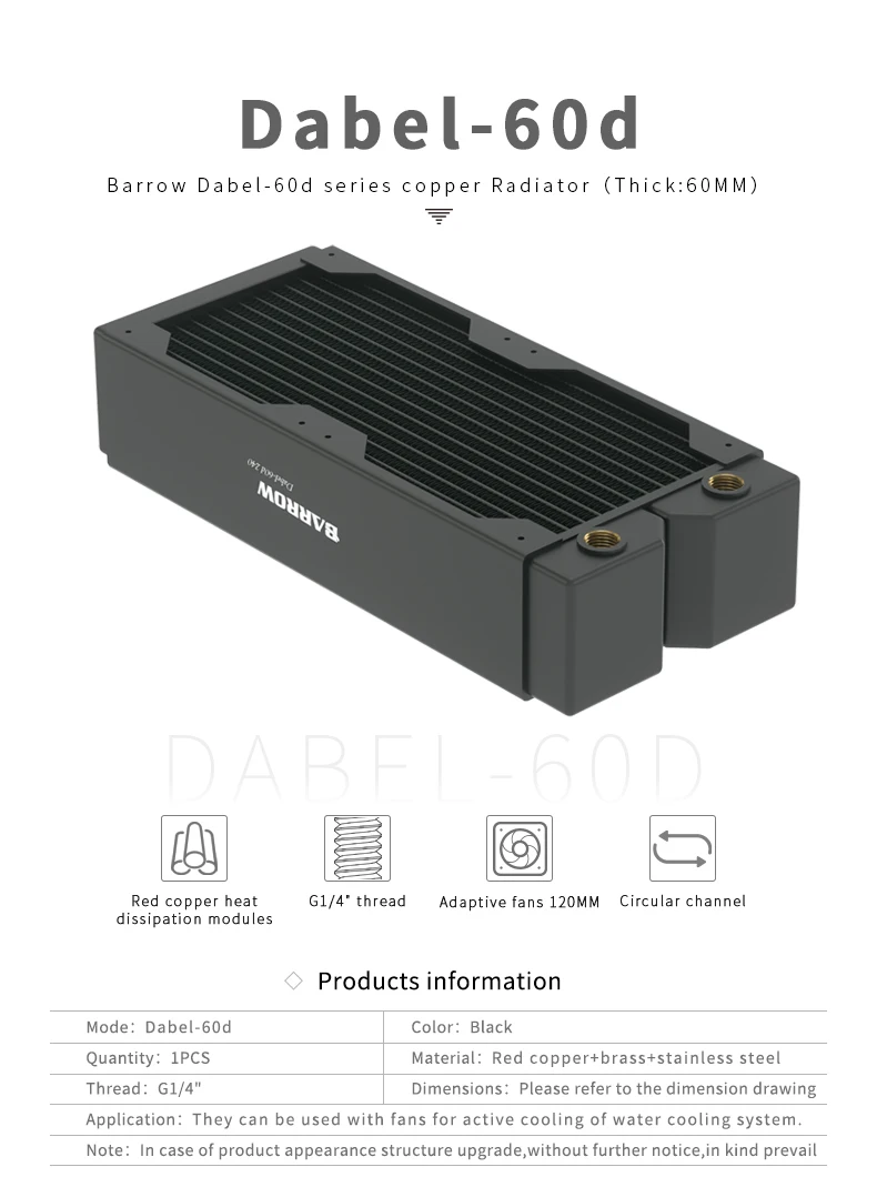 Радиатор Barrow с водяным охлаждением, 60 мм, сделай сам, сверхтолс...
