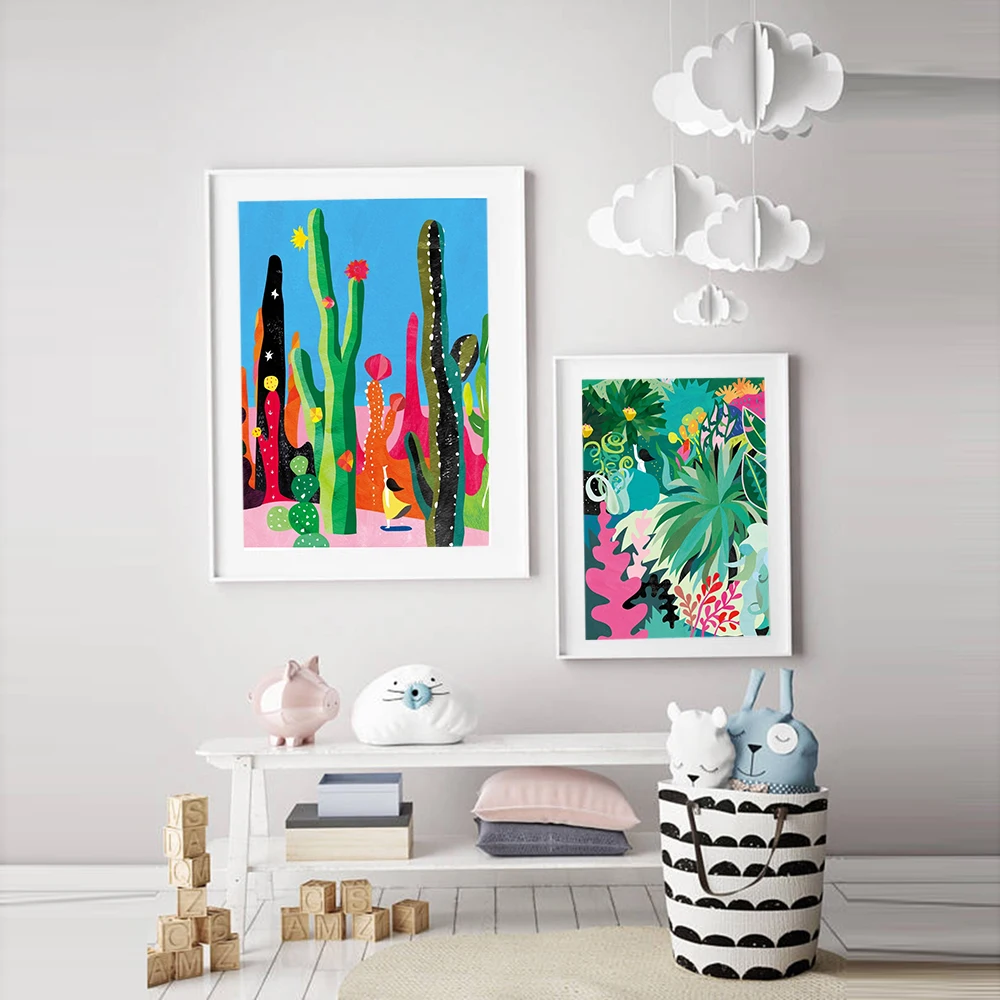 Настенная Картина на холсте с изображением ботанического сада кактуса джунглей, цветные абстрактные растения, скандинавский постер и принты, Современный домашний декор
