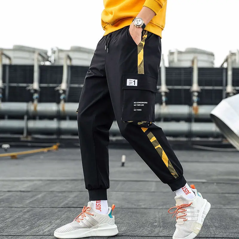 Брюки спортивные мужские, черные, в стиле хип-хоп, весна 2021
