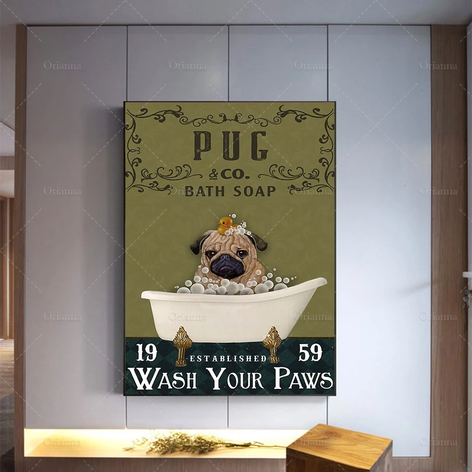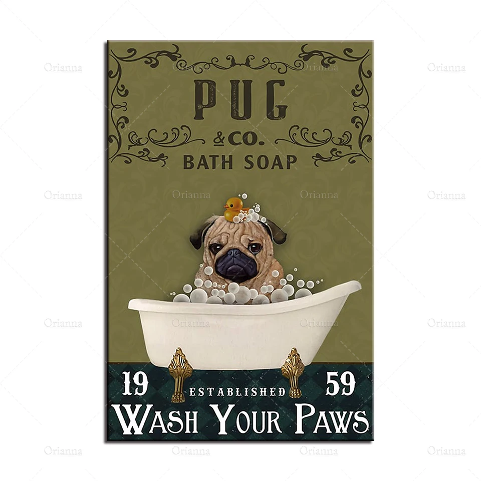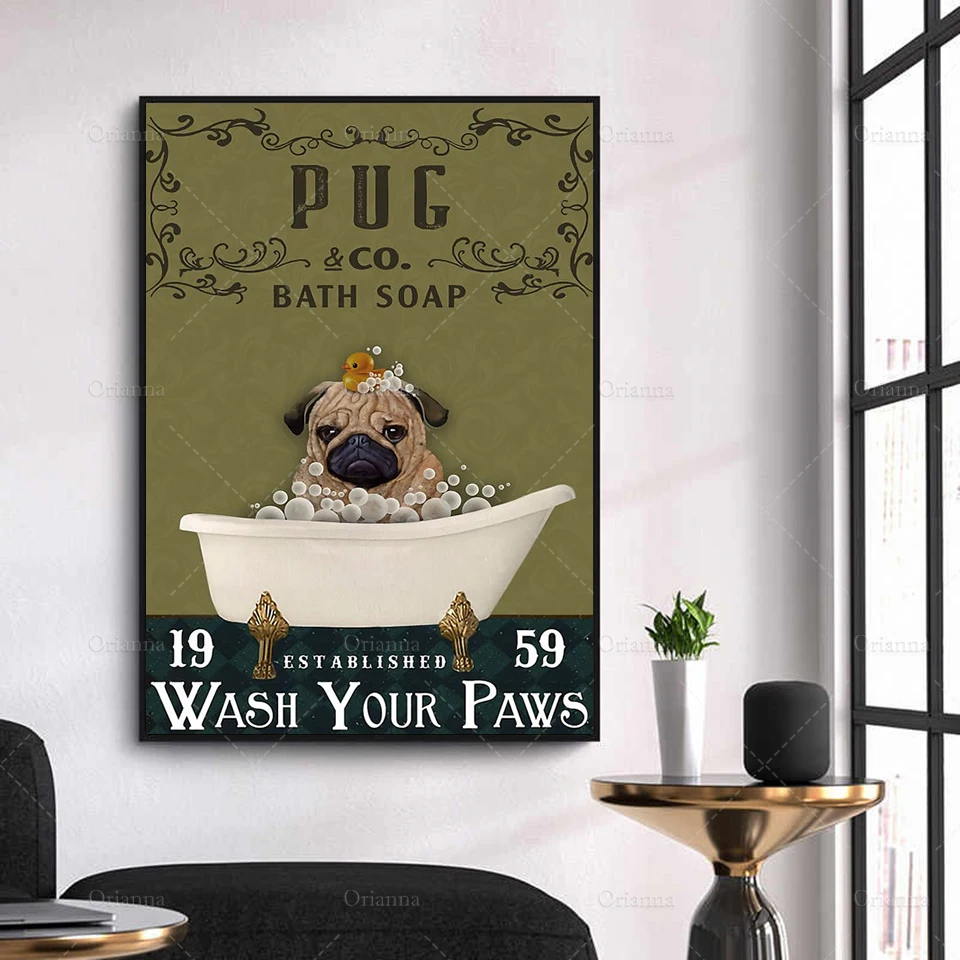 SubjectsPug Bath Soap Established Wash Your Paws Poster Dog Art Print