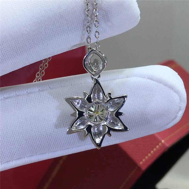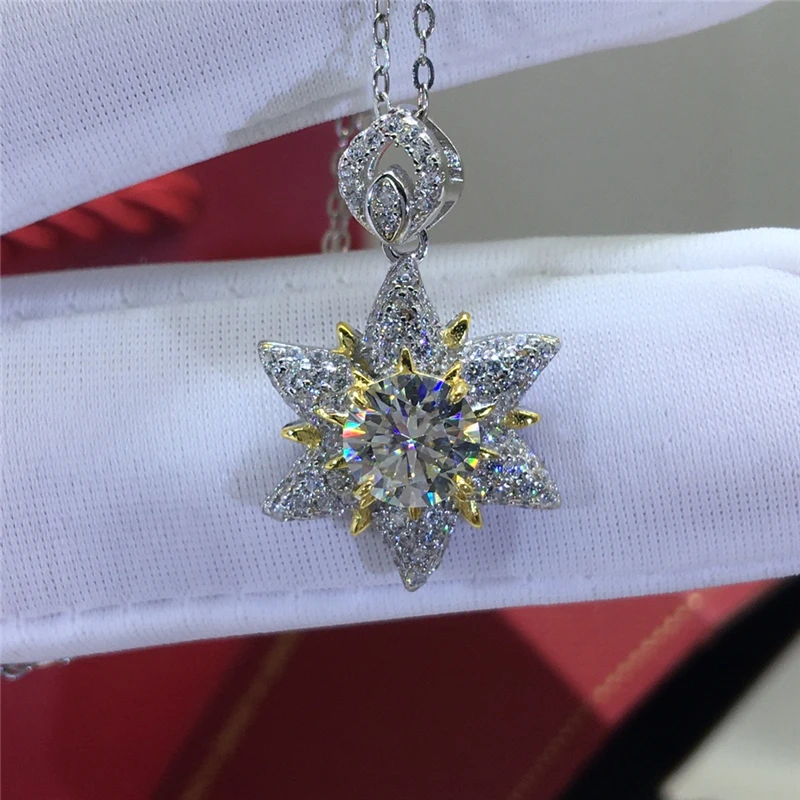 Ожерелье с кулоном Geoki из серебра 925 пробы с бриллиантами, 1 карат D, цвет VVS1, Муассанит, золотой цвет, снежинка, ювелирные изделия
