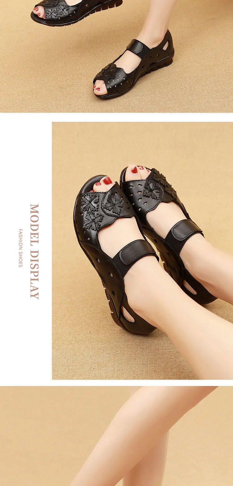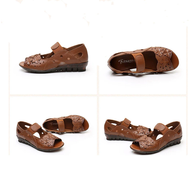 Женские босоножки из натуральной кожи OUKAHUI, летние дышащие санда...