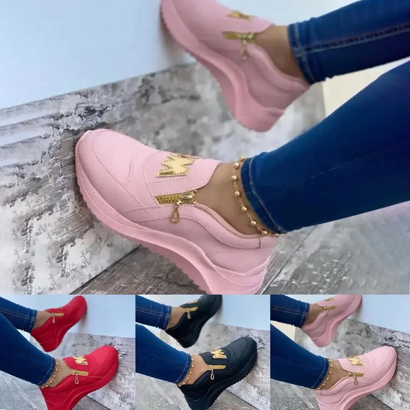 Кроссовки женские на платформе, на толстой подошве, на молнии, Неск...