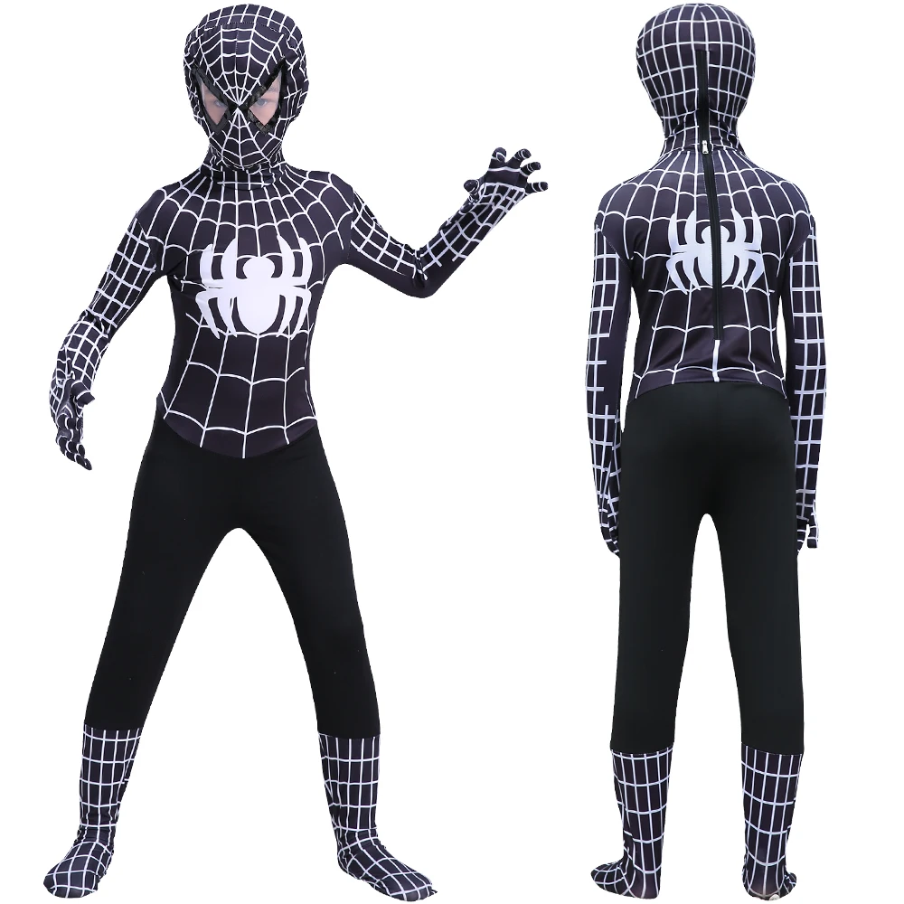 Хэллоуин Черный Spiderboy для косплея Детские костюмы на Рождество ...