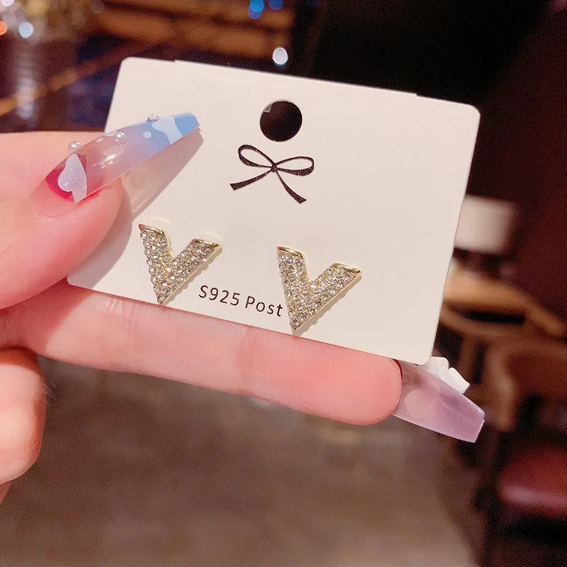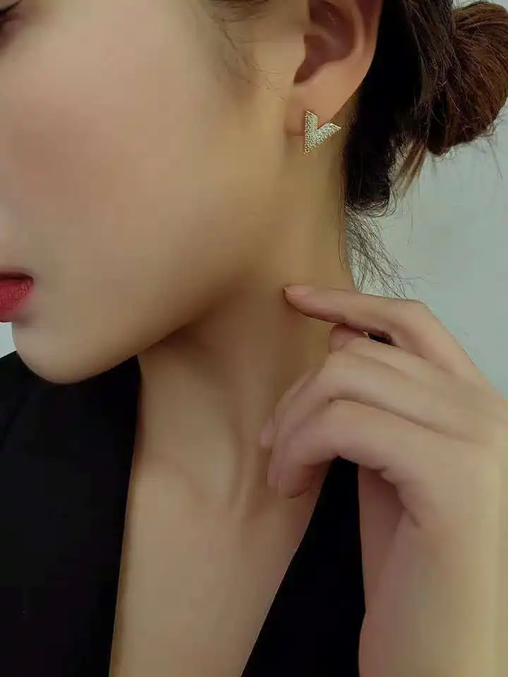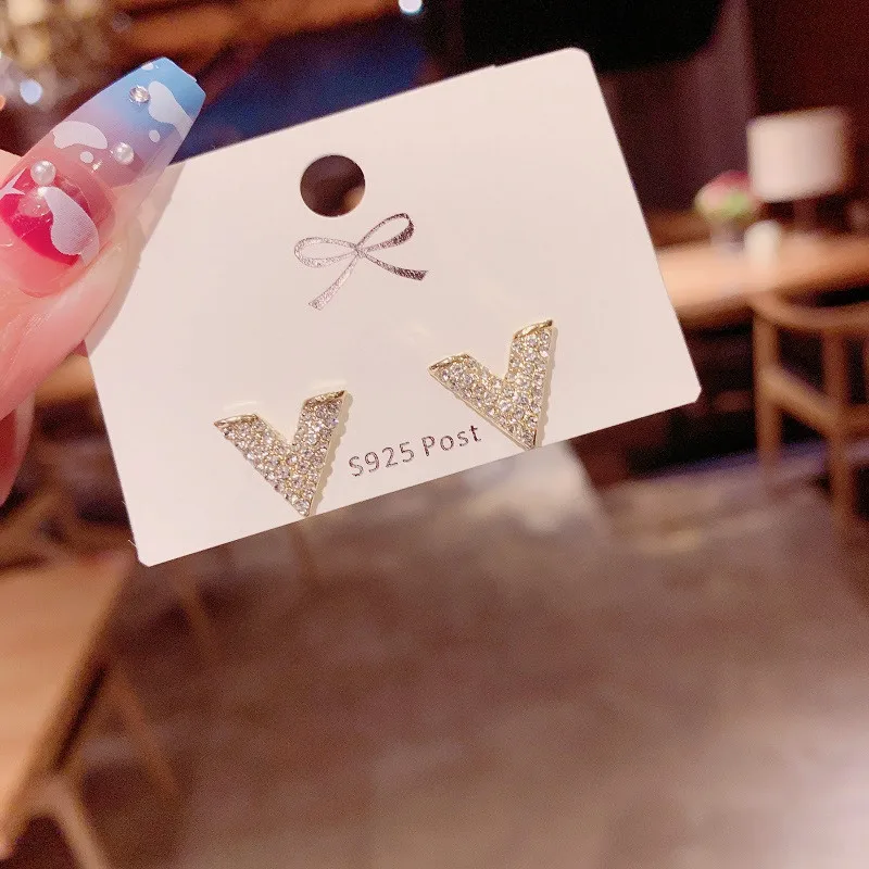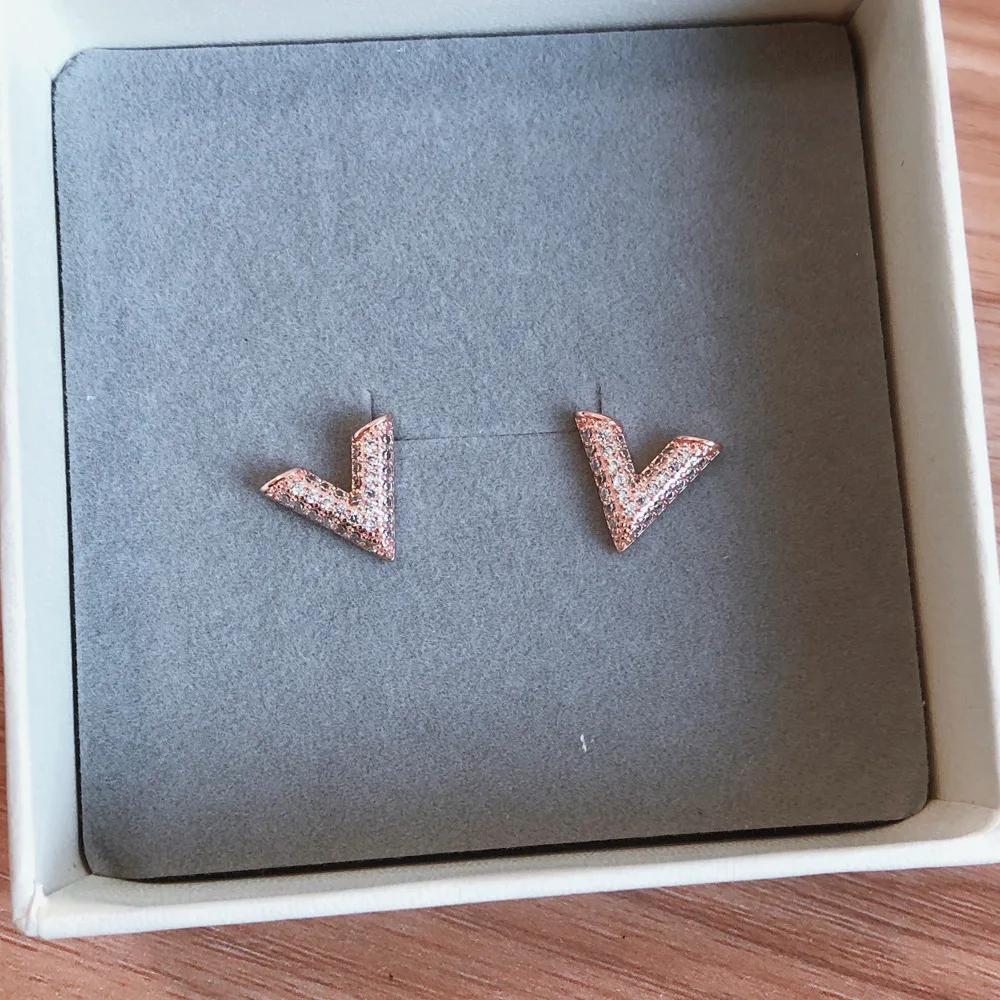 Модные геометрические треугольные серьги-гвоздики золотого и серебряного цвета, антиаллергенные блестящие V-образные серьги с микро-инкрустацией из циркония, женские Украшения