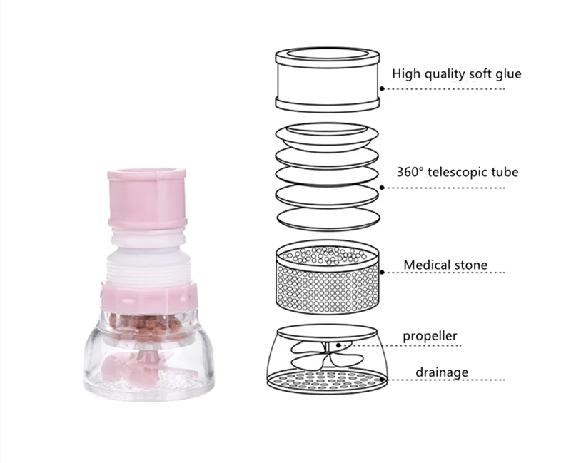 Регулируемый 360 гибкий кухонный смеситель с защитой от брызг, насадка для душа, смеситель с водяным фильтром, удлинитель крана, экономия воды