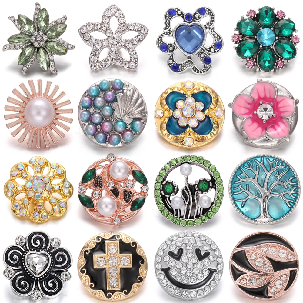 5 шт.лот, новинка, 18 мм, ювелирное изделие, смешанные стразы, цветок, дерево, круглые металлические защелки, кнопки, подходит для защелки, браслет, очаровательные ювелирные изделия