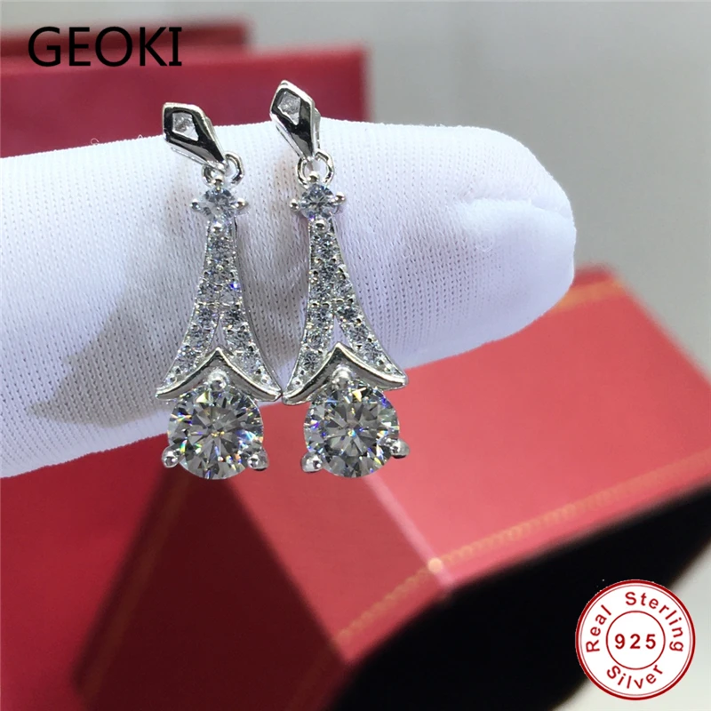 Серьги-подвески Geoki VVS1 с бриллиантами, 925 пробы, полное покрытие, 1-2 карата, идеальная огранка, цвет D, Муассанит, Купидон, стрела, подарок