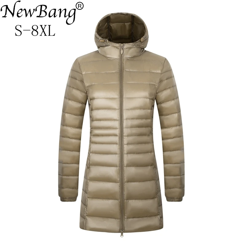 NewBang 7XL 8XL женские длинные Теплый пуховик ультра легкая зимняя куртка-пуховик Для женщин с Портативный сумка Для женщин длинные пальто с капюшоном для детей