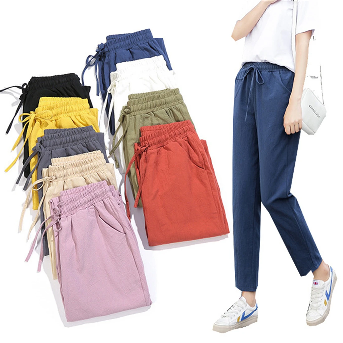 Брюки женские однотонные на завязке, домашняя одежда, эластичные Широкие длинные штаны с карманами, женские штаны