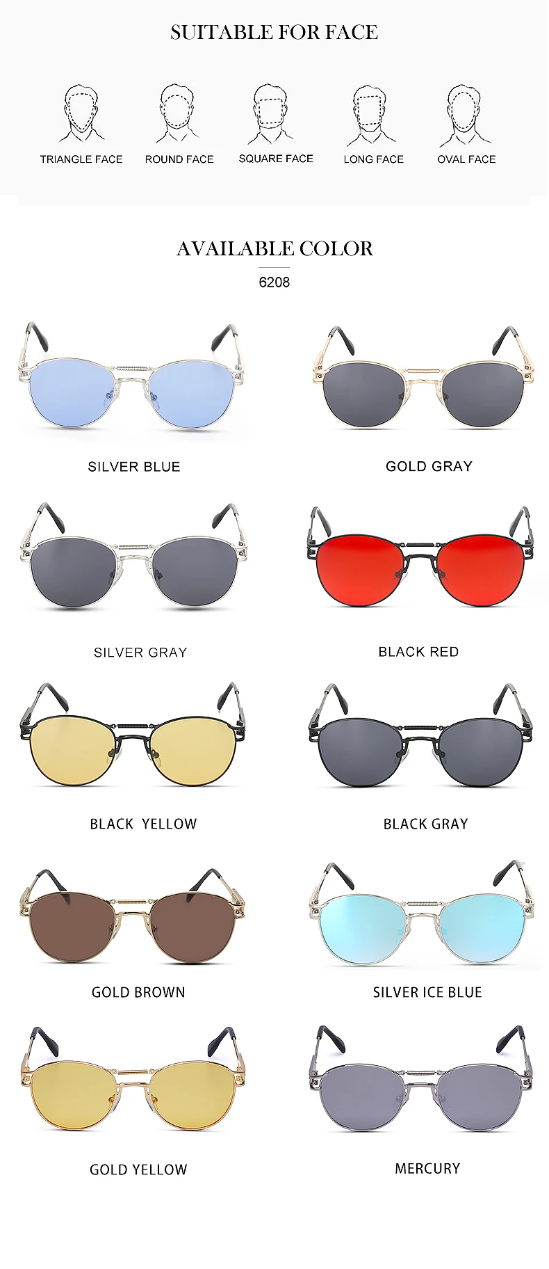 Солнцезащитные очки круглые для мужчин и женщин, классические модные готические, в металлической оправе, в стиле стимпанк, ретро, роскошные брендовые, в стиле стимпанк, 2021