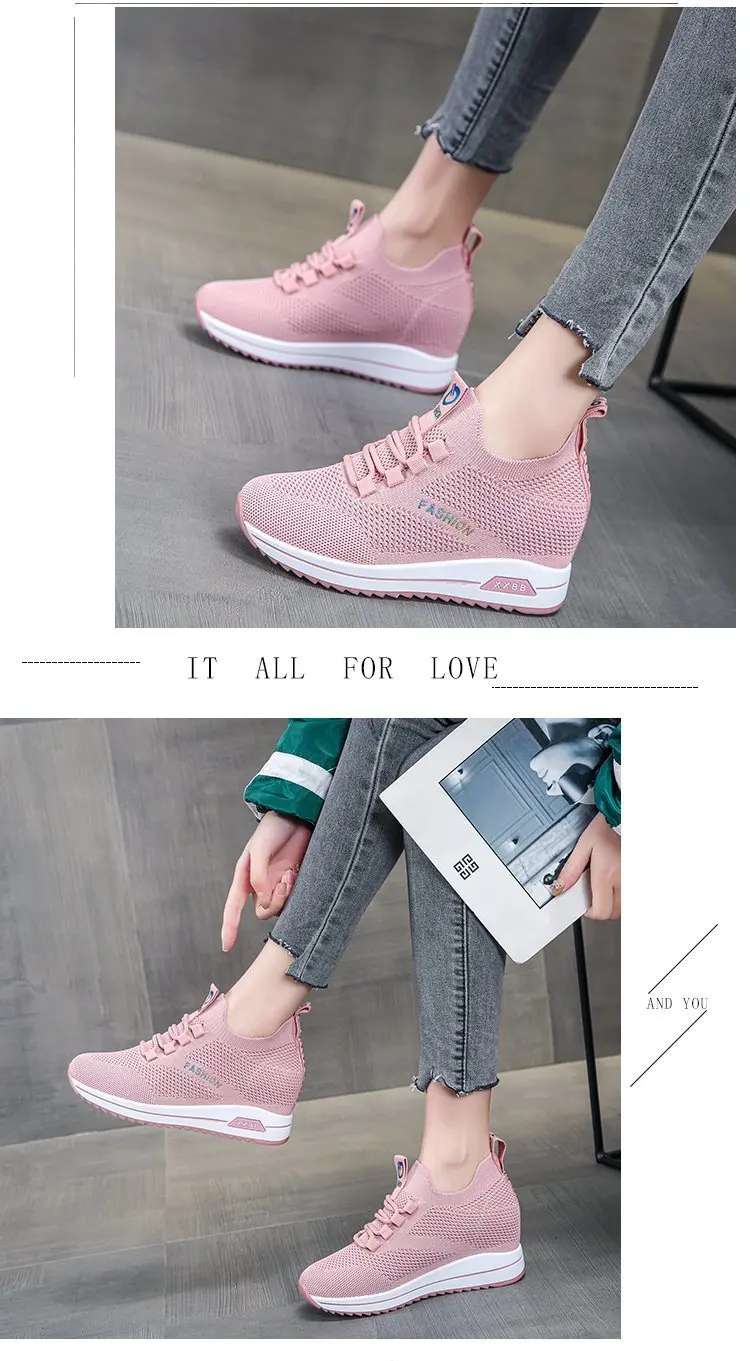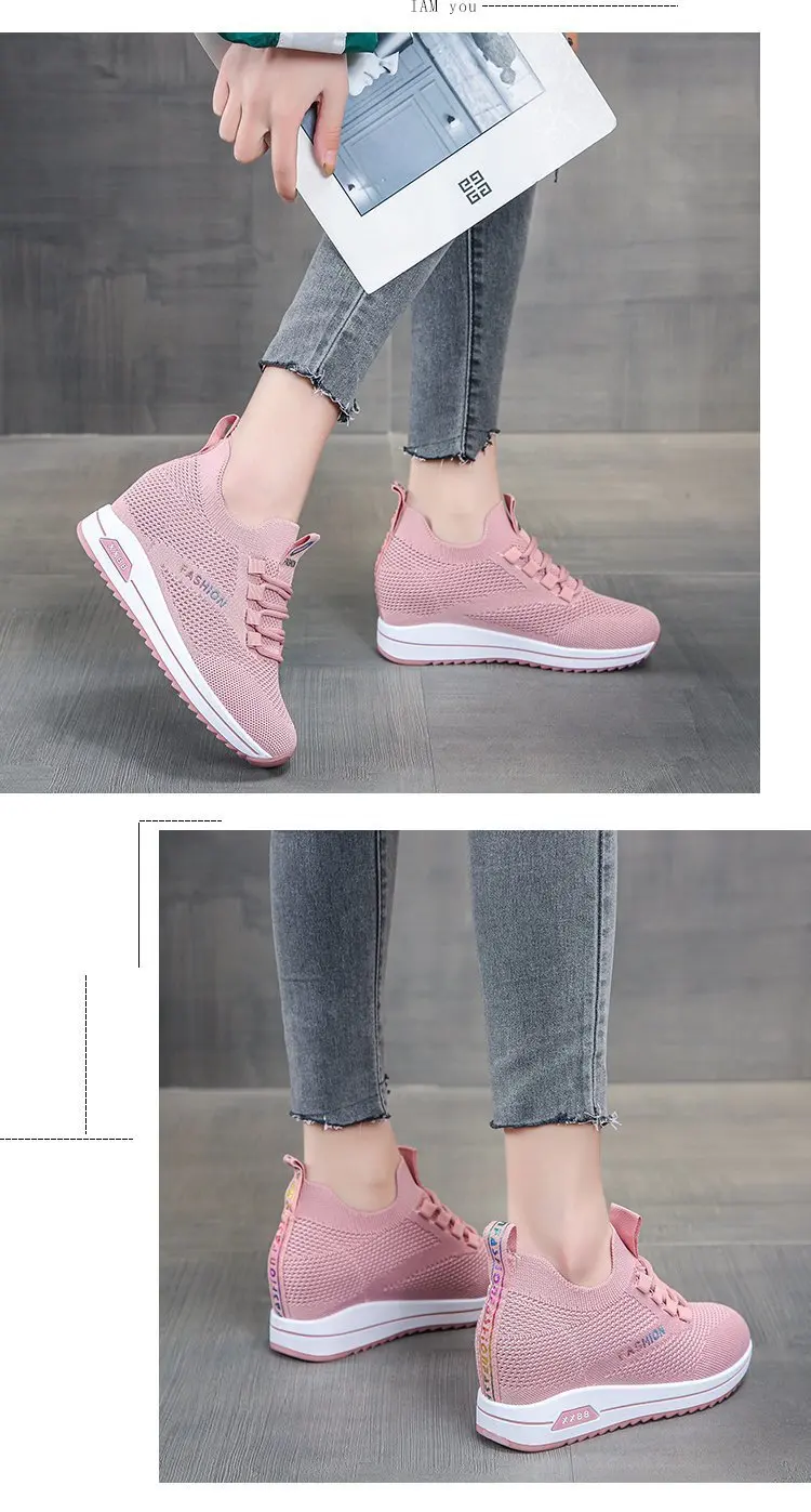Кроссовки женские на скрытой танкетке, дышащие сетчатые, повседневн...