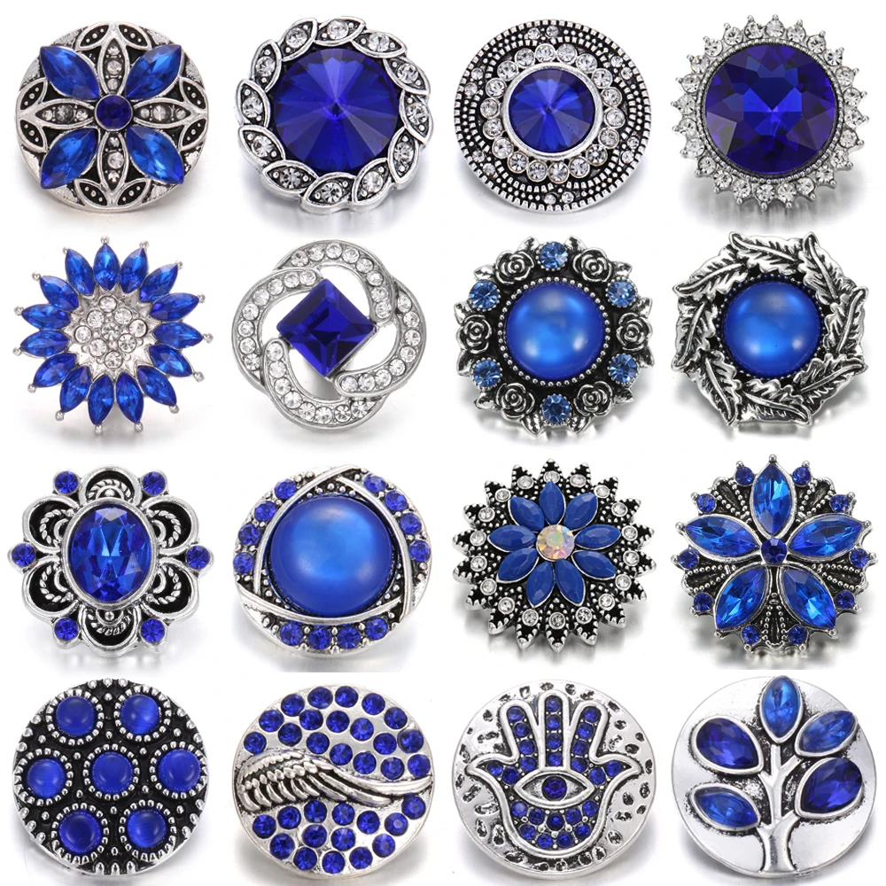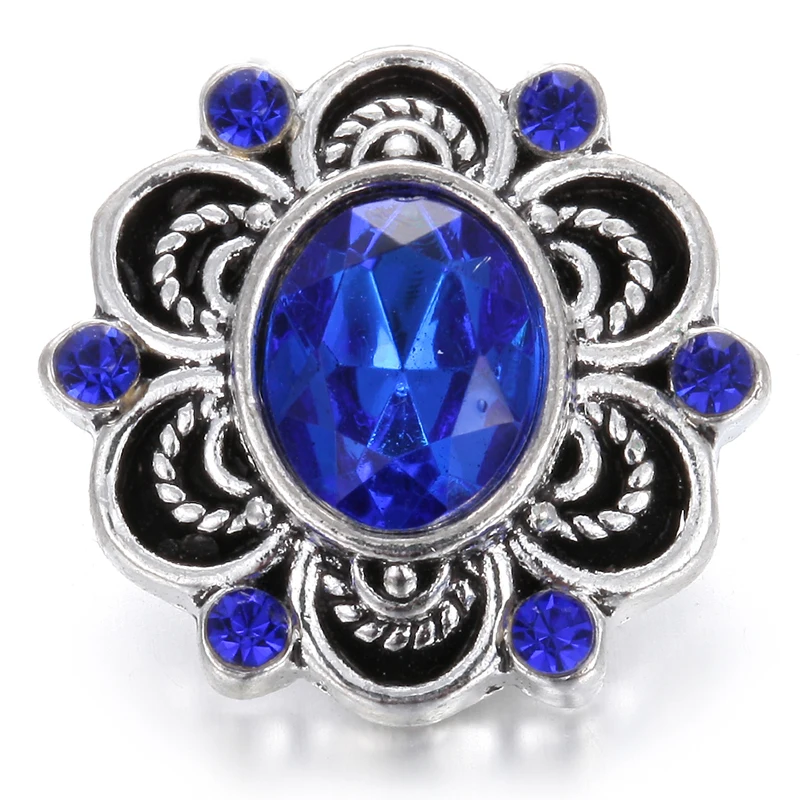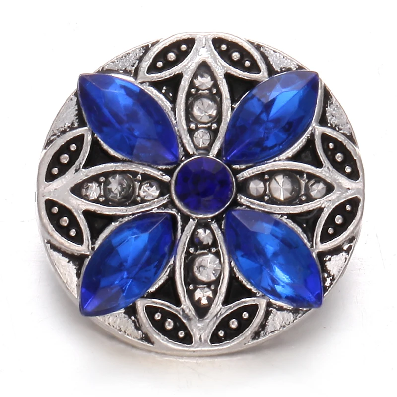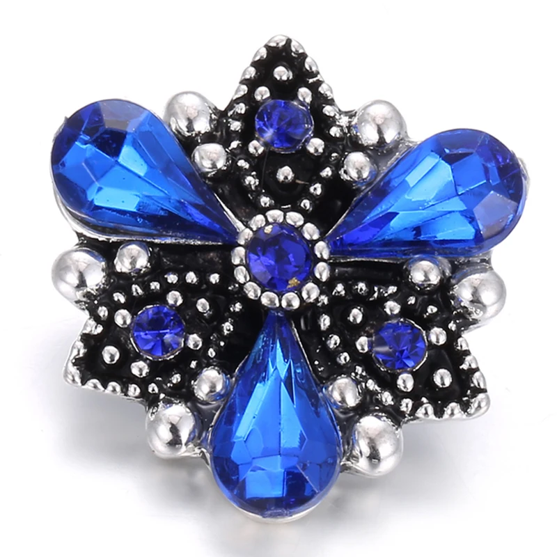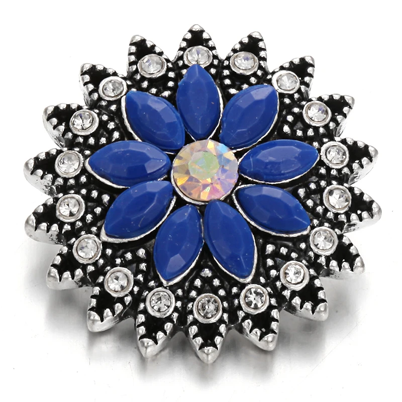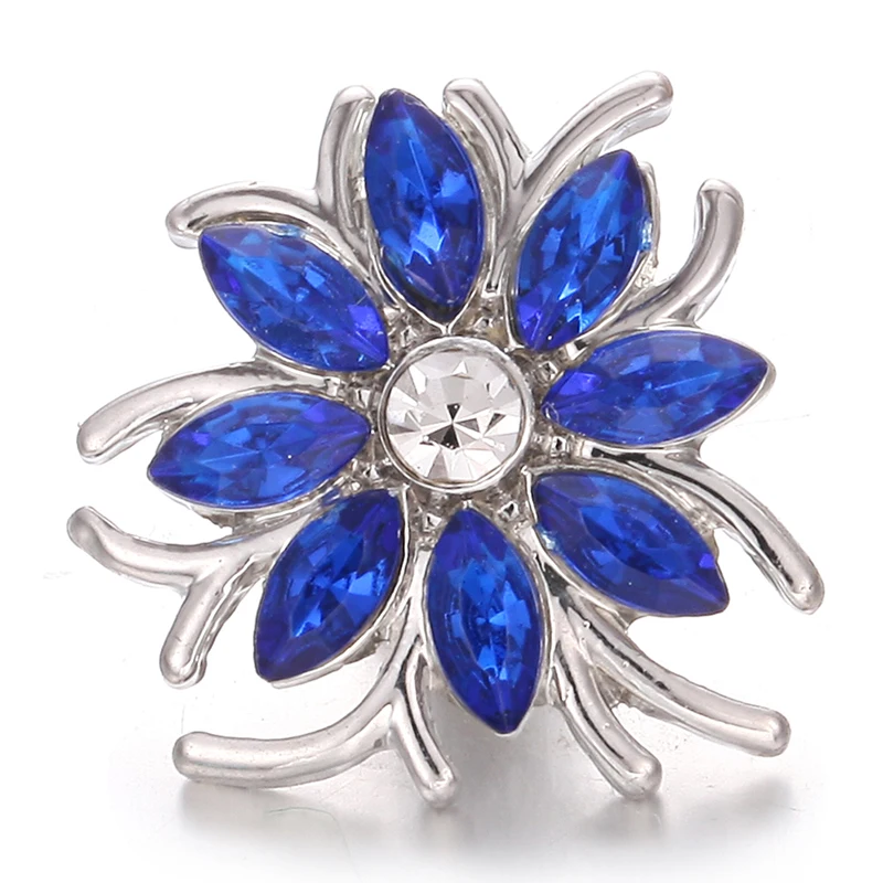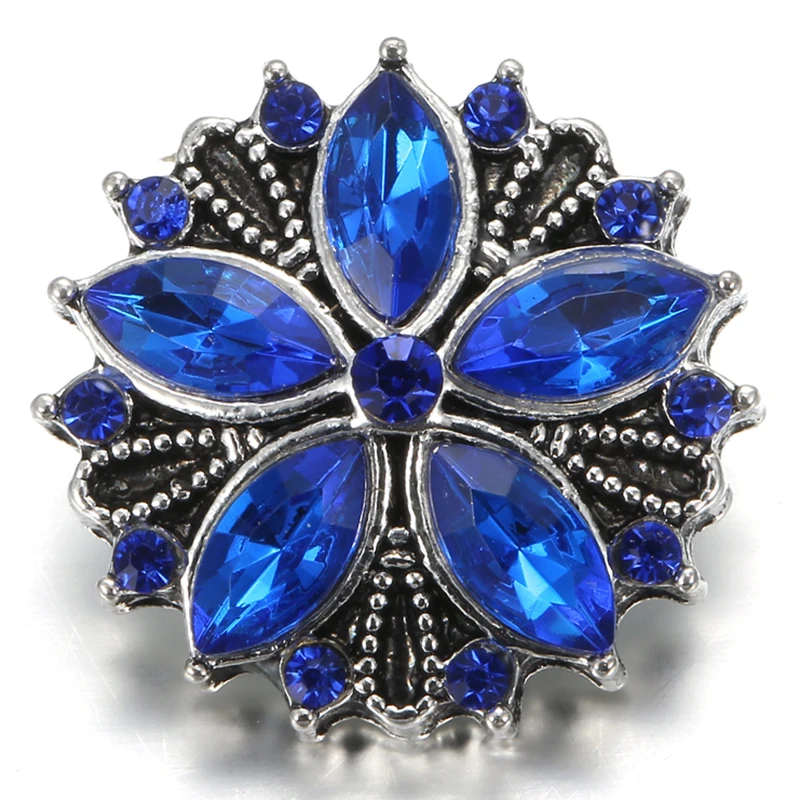 5 шт.лот Новинка оснастка ювелирные изделия Королевский синий горный хрусталь цветок Круглый 18 мм кнопки оснастки браслет ожерелье взаимозаменяемые ювелирные изделия