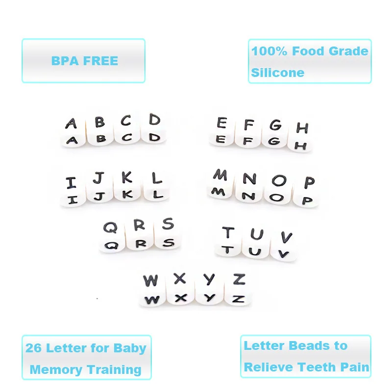 Бусины с английским алфавитом сделай сам, цепочка для пустышки без бисфенола А, аксессуары для ожерелья из пищевого силикона, 1 шт.12 мм