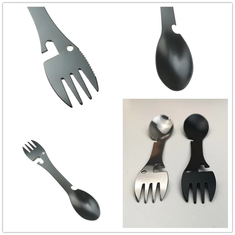 5 в 1 ложка для инструментов, посуда, многоинструментная бутылка, столовые приборы из нержавеющей стали, столовые приборы, вилка для посуды, открывалка для консервной банки, для пикника, мульти портативный лагерь