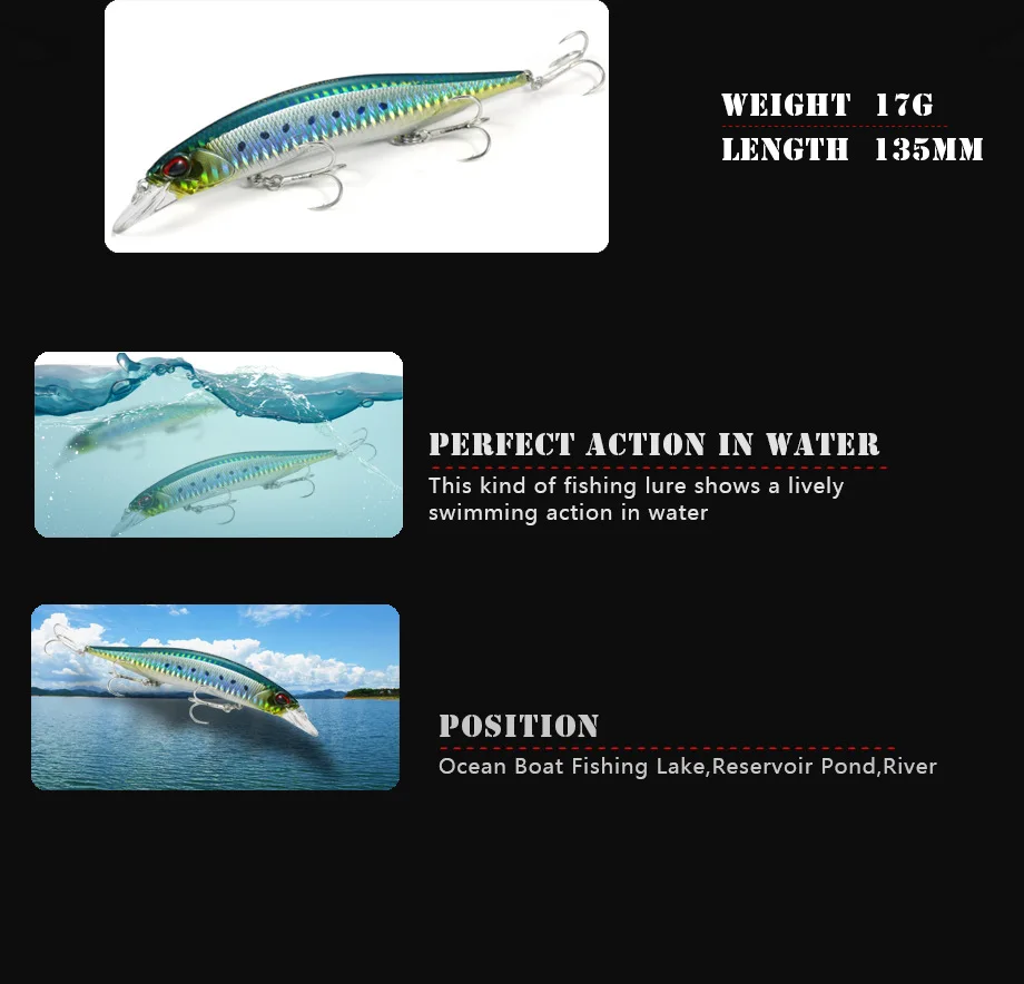 2021Hot каблуке высотой 13 см16,6 г большая блесна три крючка Мино рыболовные приманки 3d глаза опускается на дно плавающая приманка воблер жесткие приманки для рыбалки на карпа рыболовные снасти