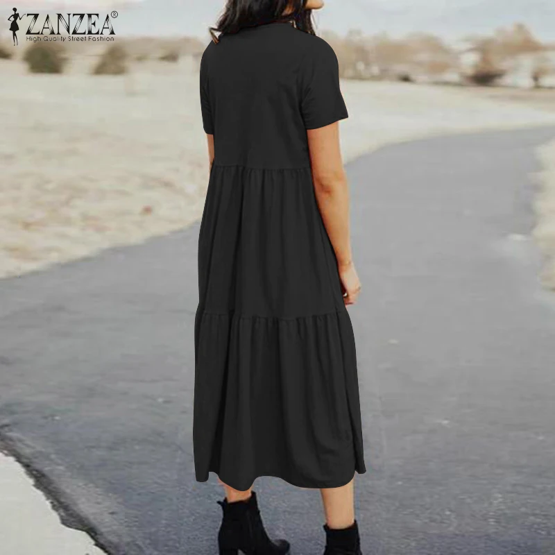 Элегантное летнее платье-рубашка ZANZEA, женский сарафан с лацканам...