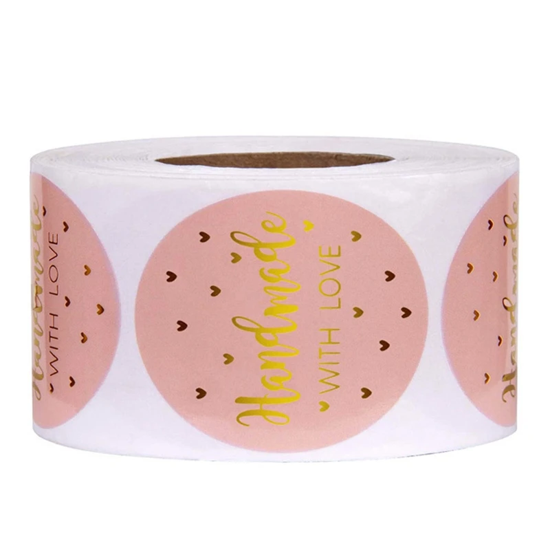 Наклейки для скрапбукинга, 500 шт.рулон, розовые, ручной работы, с любовью, наклейки в виде сердца, для подарка, Канцтовары, наклейки для свадьбы